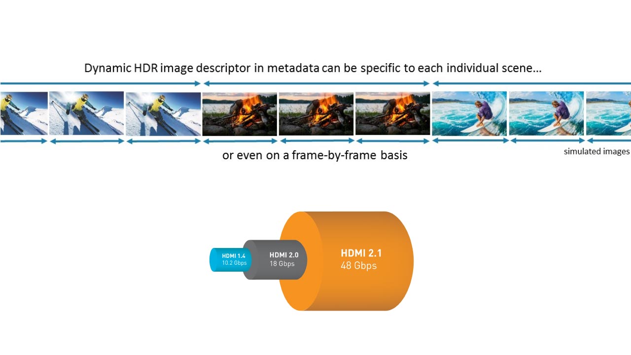 HDMI 2.1 unterstützt Dynamic HDR sowie Datenraten von bis zu 48 GBit/s.