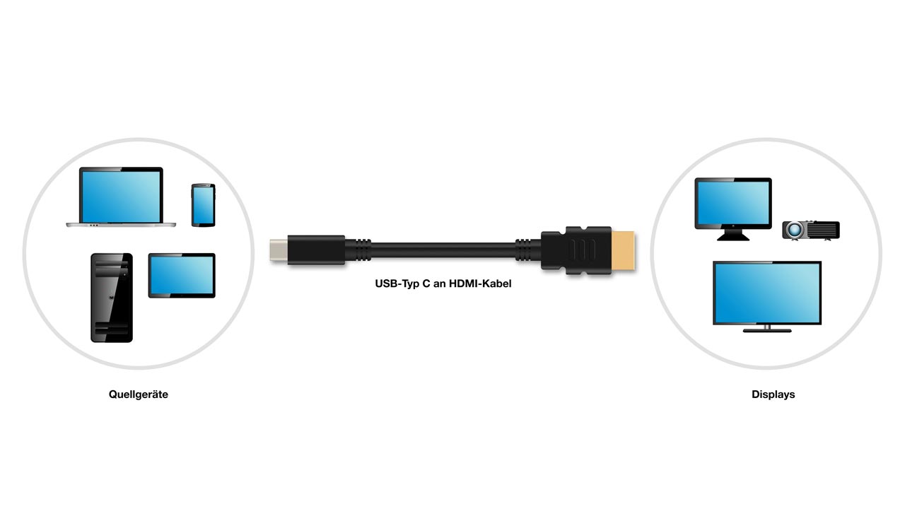 Mobile Geräte an Displays und Projektoren anschließen wird künftig leichter, denn via USB Typ-C kann man nun direkt an die HDMI-Buchse das Signal übertragen.