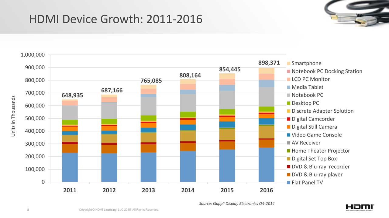 Das HDMI Forum rechnet auch weiterhin mit einer stetig wachsenden Anzahl an Geräten, die mit der neuen Schnittstelle ausgestattet sind.