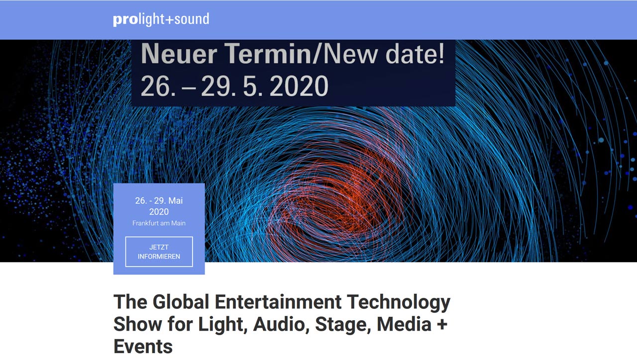 UPDATE 13.03.2020: Die Prolight + Sound wird in 2020 nicht stattfinden. Zum aktuellen Zeitpunkt, so der Veranstalter Messe Frankfurt , kann nicht davon ausgegangen werden, dass sich die Lage zum zeitnah geplanten Nachholtermin ändert. Daher gibt die Messe Frankfurt die Absage der Veranstaltung bekannt. Die Prolight + Sound 2021 findet vom 13. – 16. April statt.Entsprechend kann man nun davon ausgehen, dass auch die Photokina in Köln demnächst abgekündigt wird.