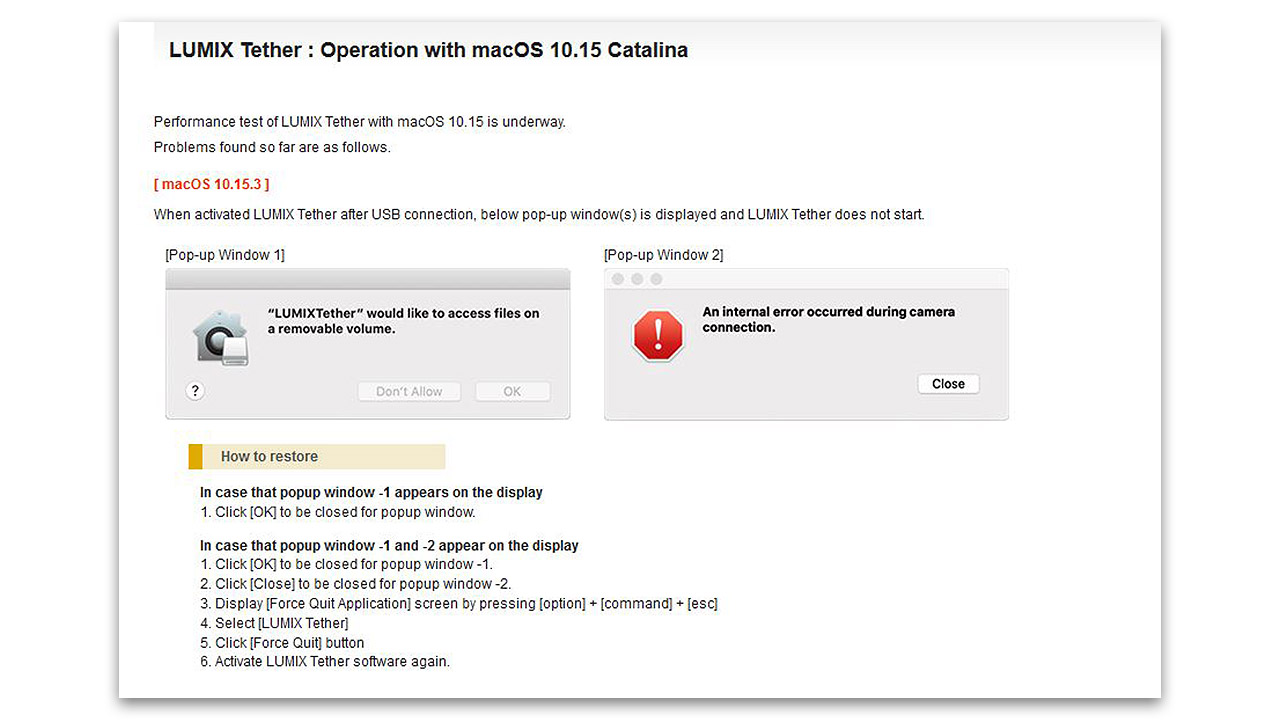 Mit dem neuen Firmware-Update verbessert Panasonic die Kompatibilität mit dem neuen Stativ-Griff DMWSHGR1 sowie die Betriebsstabilität mit dem Lumix G Vario 12-32mm / F3.5-5.6 ASPH. / O.I.S.(H-FS12032)-Objektiv. Das Update wird für die Lumix-Modelle DC-GH5, GH5S, G9, G91, G81 und GX9 kommen. Darüber hinaus gibt Panasonic die Verfügbarkeit der „Lumix Tether for Streaming (Beta)“-Software für Mac-Rechner bekannt. Alle Details zur Software haben wir bereits in unserer News zur Windows-Version vom 11. Juni 2020 beschrieben. Auch hier gilt, dass „Lumix Tether for Streaming (Beta)“ als Vorabversion zur Verfügung gestellt wird und sich noch in der Entwicklung befindet. Kompatible Kamera-Modelle sind hier die Lumix DC-S1H, DC-S1R, DC-S1, DC-S1, DC-GH5S, DC-GH5 und DC-G9. Eine Erklärung zu Download und Installation der Software unter Mac OS hat Panasonic hier bereitgestellt.