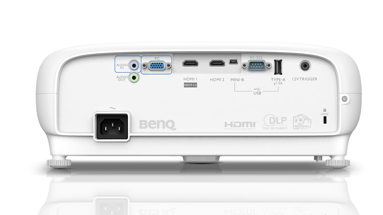 Der BenQ TK800 stellt eine HDMI-2.0- und HDMI-1.4-Buchse bereit. Daneben gibt es noch einen VGA-Anschluss.