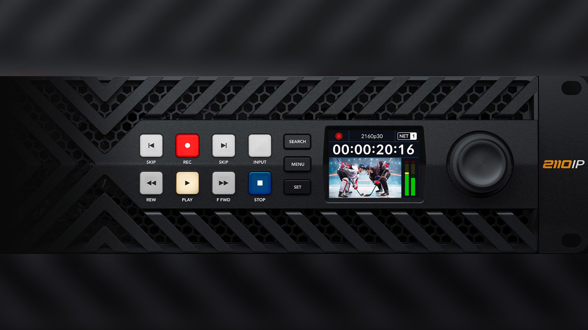 Den Anfang macht der Hyperdeck ISO Recorder 100G, welcher für die Aufnahme von bis zu acht Kameras in ProRes 4K-UHD ausgelegt ist, wobei die ProRes-Codes 422 HQ, 422 und 422 LT unterstützt werden. Er besitzt zwei 100G-Ethernet-Anschlüsse, so dass man die Signale über einen einzigen Eingang einspielen kann. Durch die beiden Anschlüsse ist Redundanz gewährleistet, sodass immer ein Signal aufgezeichnet werden soll. Weitere Redundanz garantieren doppelte Konnektoren für Strom (Kaltgeräte), 2110 PTP Clock und 10G Control (Ethernet) sowie 100G 2110 IP Video (100G-Ethernet). Desweiteren sind Anschlüsse für Management, Fernbedienung und den Monitor an Bord. Der Preis liegt bei 5.149 Euro, ein Marktstart ist gemeinsam mit den anderen Produkten für den Juni geplant.