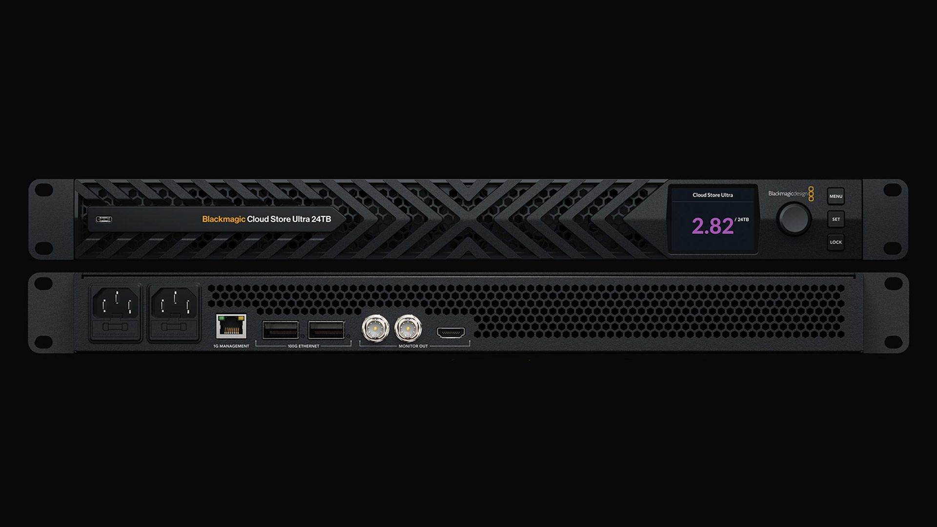 Blackmagic Design verspricht für den Hyperdeck ISO Recorder 100G umfassende Kompatibilität mit der kompletten Live-Infrastruktur des Herstellers, wozu auch die beiden ebenfalls neuen Speicher Cloud Store Ultra und Media Dock Ultra gehören. Ersterer bietet wenig überraschend Netzwerkspeicher, wobei Kapazitäten von 24 TB (9.075 Euro) und 48 TB (16.095 Euro) zur Verfügung stehen. Anschlussseitig besitzt das Gerät neben zwei zueinander redundanten Stromanschlüssen ebenso viele 100G-Ethernet- und SDI-Monitorbuchsen. Ein HDMI-Monitoranschluss sowie ein Ethernet-Managementport vervollständigen die Anschlüsse. RAID 5 wird ebenso unterstützt wie der Zugriff von mehreren Anwenden, ob lokal oder über die Blackmagic Cloud. Ganz lokal bleibt Blackmagic Media Dock Ultra, welches mit drei Einschüben für die herstellereigenen Speichermodule zwar ebenso viel Speichermöglichkeiten bietet wie das kleinere Media Dock, besitzt im Gegensatz zu diesem aber 100G-Ethernet-Anschlüsse. Anschlussseitig mit dem Cloud Store Ultra identisch, kommt das Media Dock Ultra für 3.925 US-Dollar im Juni in den Handel.