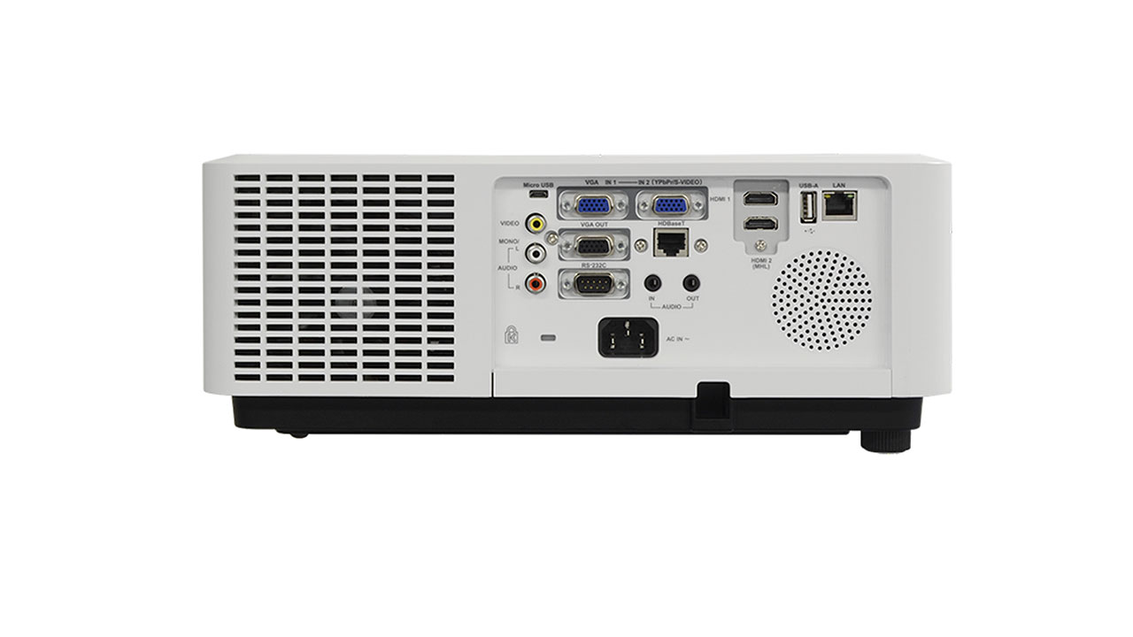 Die Anschlussleiste stellt unter anderem HDBaseT, VGA und RCA sowie zweimal HDMI, USB und einen 3,5 Millimeter Kopfhöreranschluss bereit. Die Lüfterlautstärke soll im Eco-Modus bei 32,5 Dezibel im normalen Lichtmodus bei 35,5 Dezibel liegen.