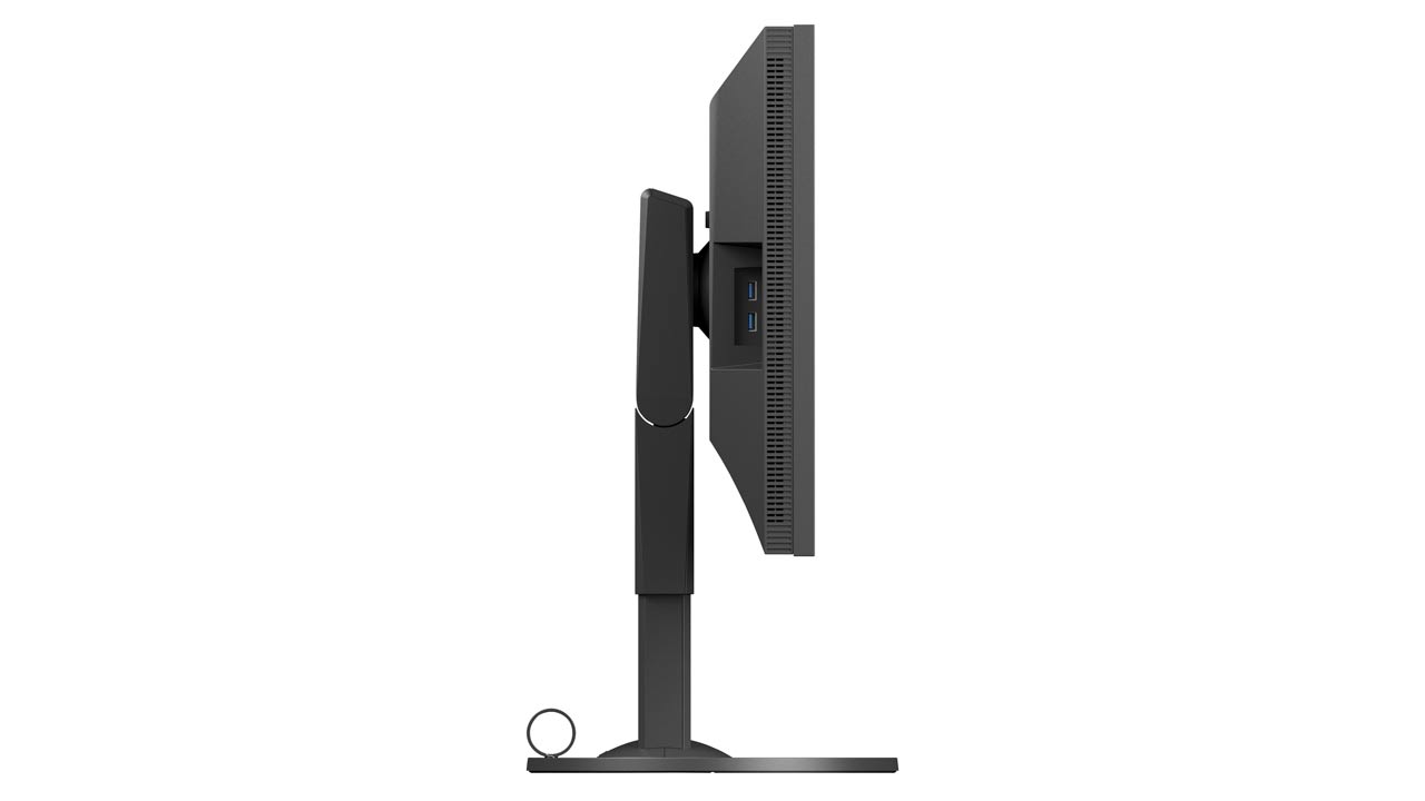 Der Monitor lässt sich vielfältig in der Höhe und Neigung verstellen und lässt sich zudem in Pivot-Stellung hochkant drehen.