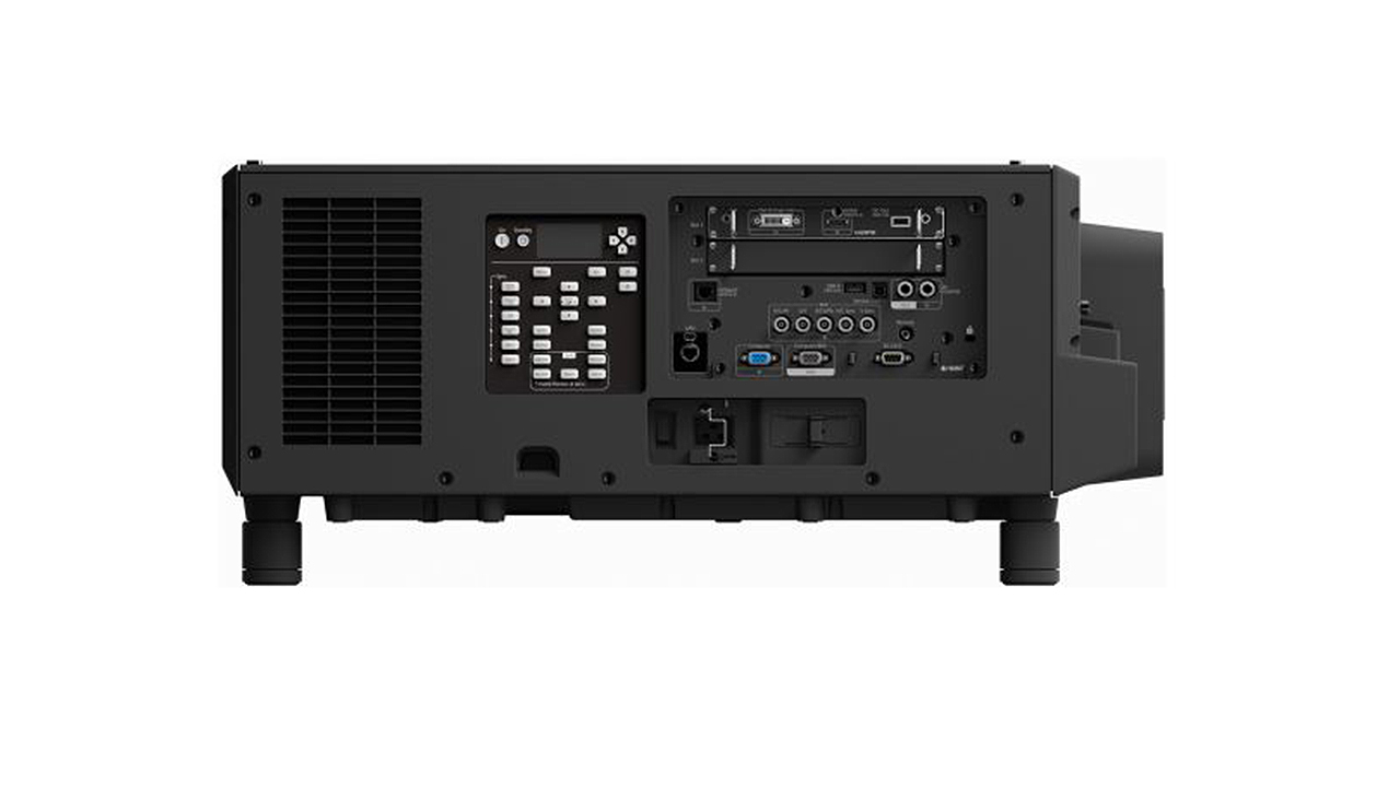 Der Projektor mit 3LCD-Panel liefert eine native Auflösung von 1920 x 1200 Pixeln und kommt auf eine maximale Helligkeit von bis zu 20.000 Lumen. Das Kontrastverhältnis gibt der Hersteller mit 2.500.000:1 an und verspricht eine Lampenlebensdauer von bis zu 30.000 Stunden, je nach Betriebsmodus aufgrund der integrierten Laserlichtquelle. Der Installationsprojektor verfügt über eine manuelle vertikale Trapezkorrektur für +/- 45 Grad sowie in der Horizontalen für +/- 30 Grad. Auch ein motorisierter Lens-Shift für vertikale +/- 60 Prozent und horizontal +/- 18 Prozent Bildverschiebung ist mit dabei. Der Zoomfaktor reicht von 1,0-fach bis 1,6-fach. Die Bedienung gelingt über ein Bedienfeld mit LCD-Anzeige auf der Geräteseite des Projektors.