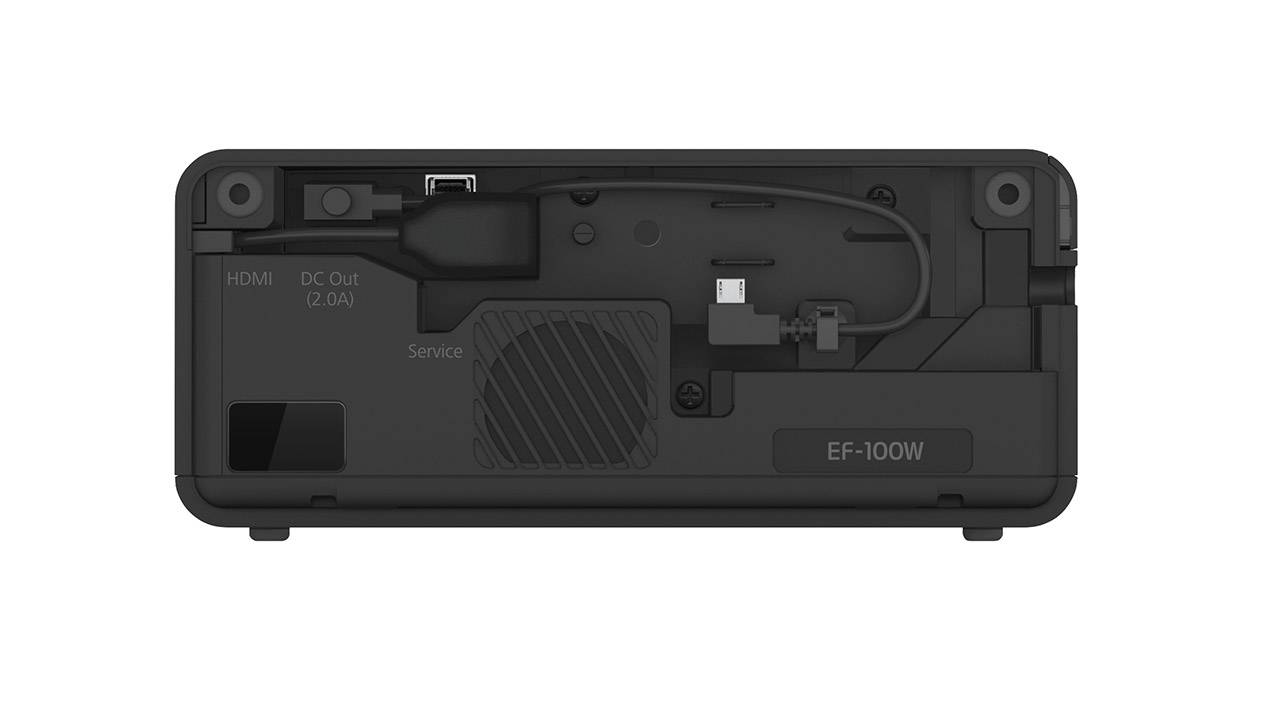 Mit der nativen Auflösung hält Epson aber leider etwas hinter dem Berg und schreibt in den technischen Daten lediglich „HD ready“. Das bedeutet, dass der Beamer entweder 1280 x 720 Pixel oder auch 1280 x 800 Pixel native zeigen kann, Full-HD liefert er also nicht. Trotzdem wird er auch dieses anzeigen können, rechnet es dann aber auf die nativen Bildpunkte herunter. In puncto Helligkeit soll der EF-100 bis zu 2000 Lumen erreichen und nutzt dafür eine Laserlichtquelle. Es gibt eine automatische Trapezkorrektur in der Vertikalen für +/- 45 Grad sowie eine manuelle horizontal für +/- 40 Grad.