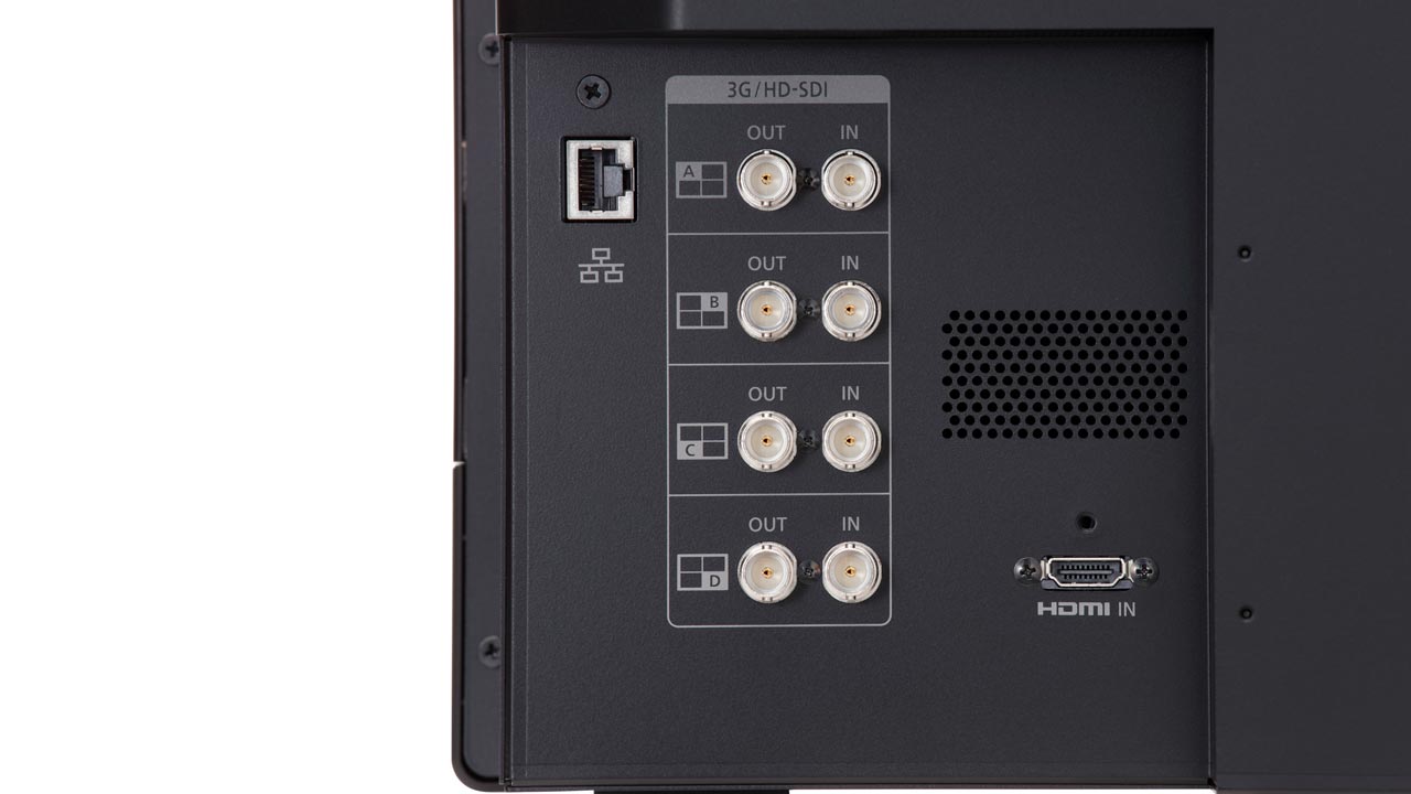 Die 4K-Signale nimmt der DP-V1710 auch aufgeteilt in vier SDI-Leitungen entgegen.