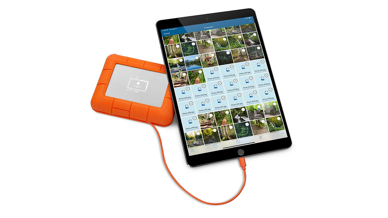 Mit der LaCie Rugged Boss SSD lassen sich Video- und Film-Dateien auch unabhänig von einem Laptop kopieren und via Tablet oder Smartphone direkt sichten.