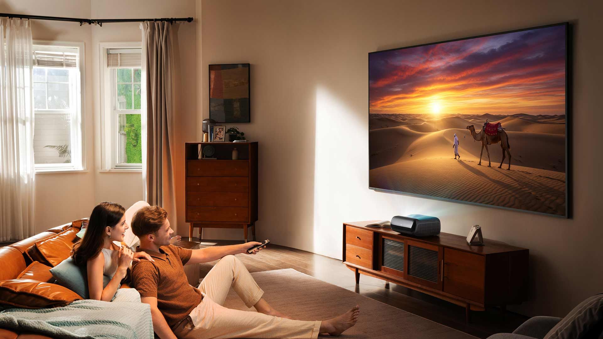JMGO will sich als Projektorhersteller fest etablieren und stellt mit dem O2S Ultra einen Triple-Laser-Projektor vor, der aus knappen 17 Zentimeter Abstand ein Bild mit 100 Zoll an die Wand wirft.