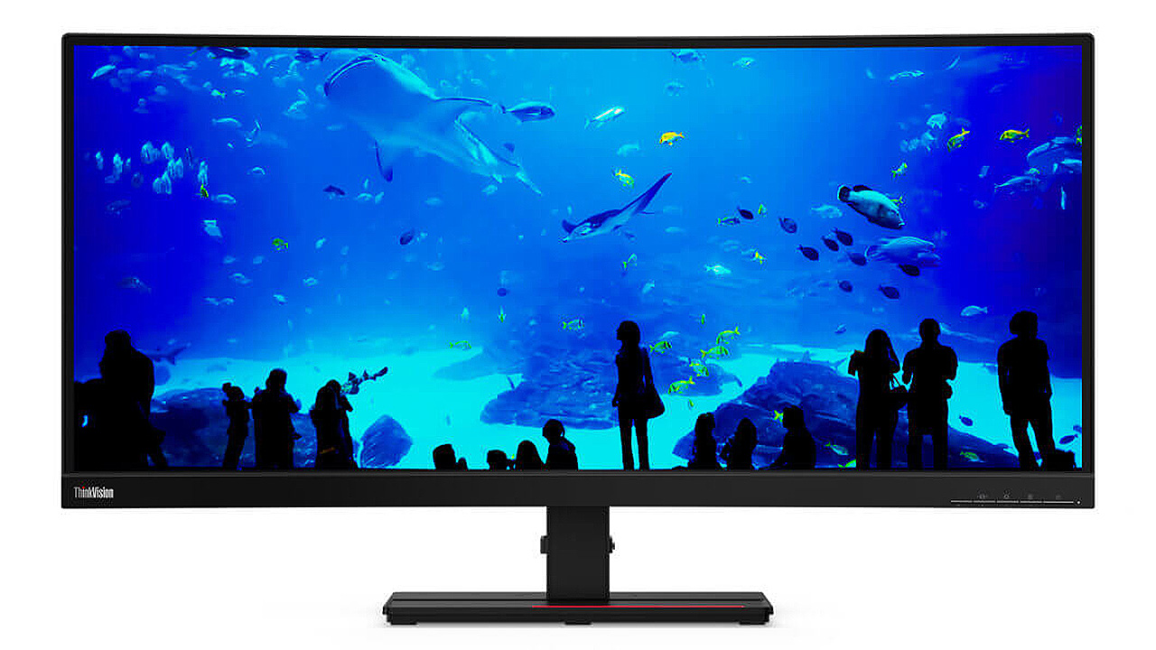 Der Lenovo T34w-20 soll sich als ultrabreiter Arbeitsmonitor hervortun, der mit VA-Panel und nativen 3440 x 1440 Pixel arbeitet. HDR kann er aber nicht.