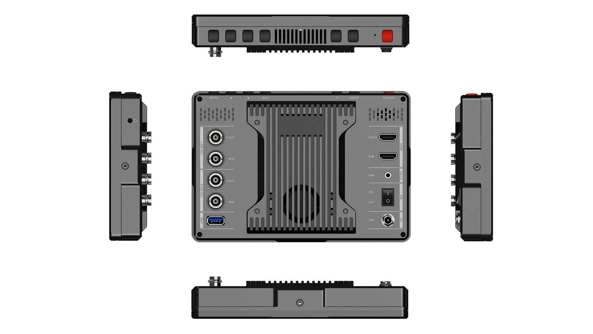 Die native Auflösung des 7-Zoll-Geräts liegt bei 1920 x 1200 Pixeln für ein Bildseitenverhältnis von 16:10 und einem Kontrastverhältnis von 1200:1. Welche Panel-Technik hier zum Einsatz kommt, erwähnt der Hersteller nicht. Da die Blickwinkelstabilität aber bei 170 Grad für die Vertikale wie Horizontale liegen soll, kann es eigentlich nicht IPS sein.Mit seinen maximal 2000 nits eignet er sich auch oder gerade für die HDR-Produktion und soll natürlich gerade auch bei Tageslicht durch eine gute Erkennbarkeit des Bildes Vorteile bieten. Der Monitor erlaubt das einspielen von bis zu DCI-4K für 2160p/60 via HDMI sowie 12G-SDI.