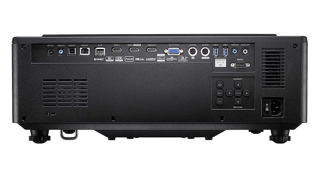 Der Optoma ist für den 24/7-Einsatz ausgelegt und garantiert aufgrund der 30.000 Stunden Lebensdauer der Laserleuchte eine wartungsfreie Projektion. Die Anschlussleiste stellt einmal HDMI 2.0 sowie HDMI 1.4a bereit und offeriert zudem einen VGA-Port plus 3,5 Millimeter Klinke und HDBaseT. Optoma verspricht eine Betriebslautstärke von 27 Dezibel im Eco-Modus sowie maximal 31 Dezibel.