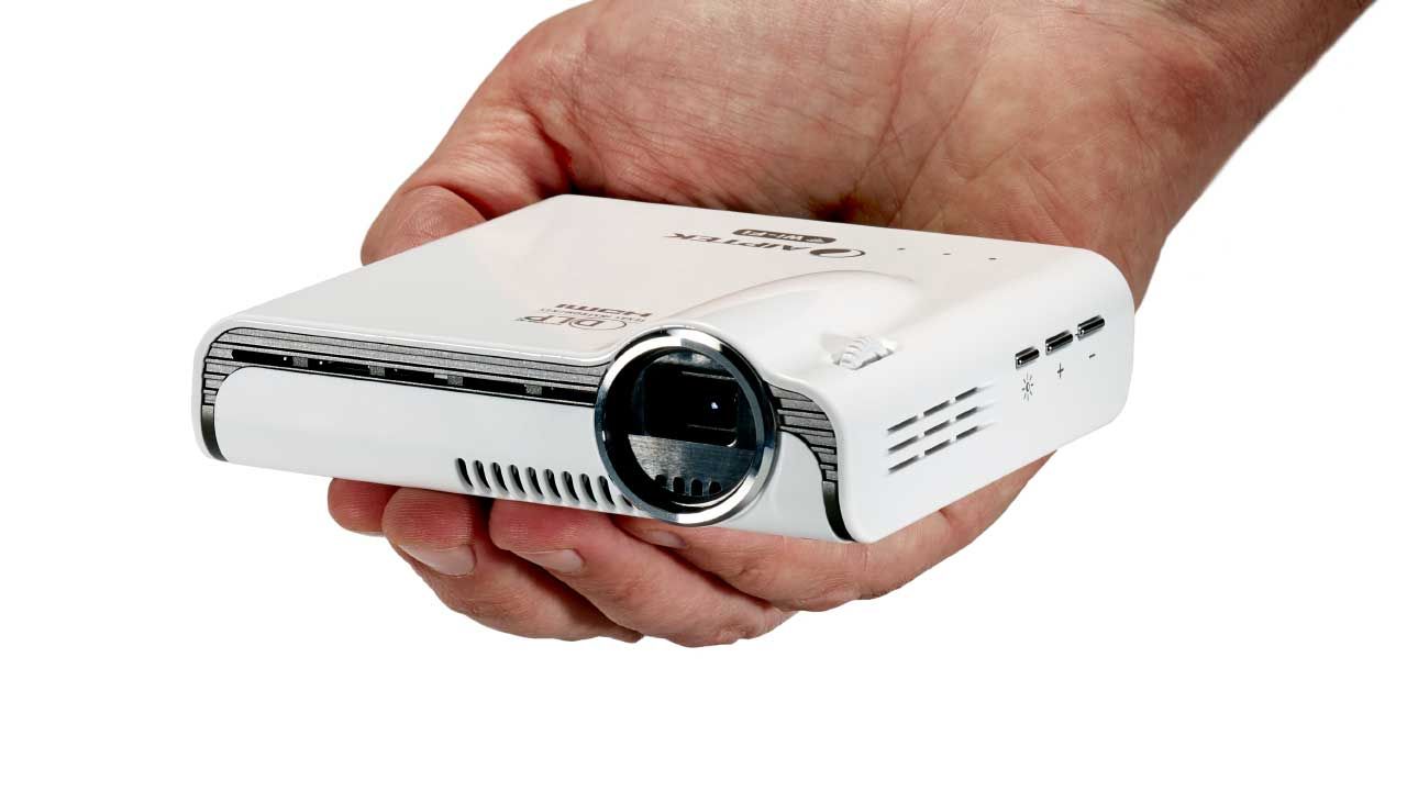 Ziemlich futuristisch sieht er ja aus, der neue PocketCinema A100W von Aiptek, die Technik macht ihn dann aber doch gegenwärtig. Der kleine Mini-Beamer setzt auf LED-Leuchtmittel und soll ein bis zu 300 Zentimeter großes Bild projizieren können.
