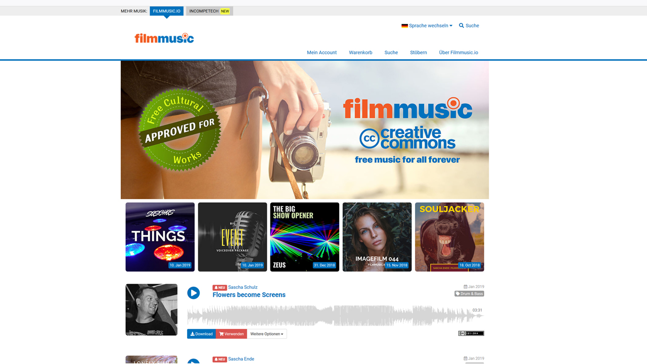 Auch im "normalen" Archiv findet man inzwischen auch Musik von anderen Komponisten und nicht nur von Filmmusic.io-Macher Sacha Ende.
