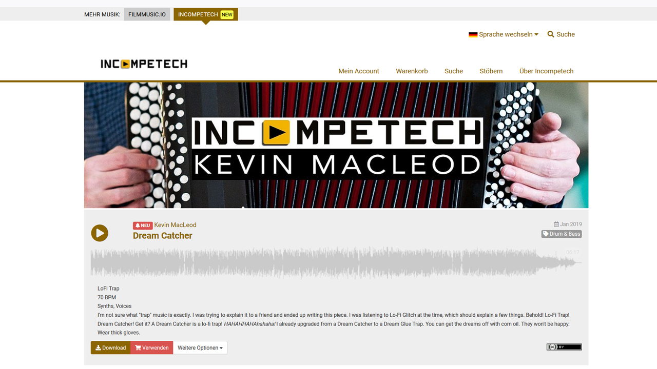 Link zum Hersteller: Filmmusic.io - Incompetech