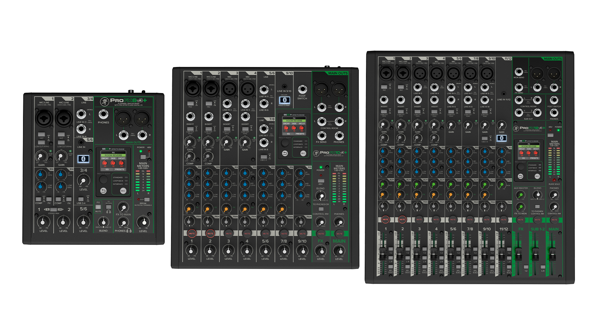 Die ProFXv3+-Mischer kommen in drei Versionen mit sechs, zehn oder zwölf Kanälen, wobei beim ProFX6v3+ zwei, bei den größeren Modellen vier als Mono-Kanalzug ausgelegt sind. Allen gemein ist das integrierte 2x4 USB-C-Audiointerface für Aufnahmen mit 24 Bit und 192 kHz. Drei Modi sind auswählbar: Im Standard-Modus nimmt das Interface den gesamten Mix mitsamt Effekten auf, im Interface-Modus den trockenen Mix ohne Effekte. Der Loopback-Modus erlaubt die Mischung von Aufnahme und Computer-Signal, beispielsweise für die Arbeit mit Backing-Tracks. Neu sind auch bi-direktionales Bluetooth-Audio und ein farbiger LCD-Bildschirm. Mackie hat die GigFX+ Effekt-Engine erweitert, diese bietet nun 12 Effekte mit unter anderem Equalizer und Kompressor. Softwareseitig gibt Mackie Tracktions Waveform-DAW in einer abgespeckten Variante mit. Die ProFXv3+-Mischpulte kommen im ersten Quartal 2024 auf den Markt. Europreise sind noch nicht bekannt, auf der Herstellerwebsite nennt Mackie einen Preis von 250 Dollar für den ProFX6v3+, 330 Dollar für den ProFX10v3+ und 420 Dollar für den ProFX12v3+, womit die Modelle 60 Dollar über den entsprechenden ProFXv3-Modellen.