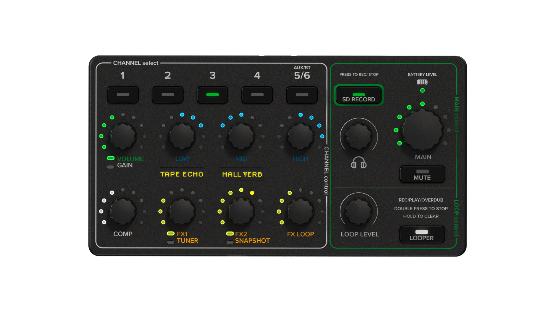 Für Kleinkünstler und vor allem Straßenmusiker ist die ShowBox gedacht, welche ein kompaktes Mischpult mit einem Lautsprecher kombiniert. Eine 400W-Endstufe sorgt für ausreichende Lautstärke, der verbaute Akku soll für bis zu zwölf Stunden Betrieb ausreichen. Wer das Audiosignal digital aufzeichnen möchte, kann das über die USB-C-Schnittstelle des verbauten Audiointerfaces tun. Daneben finden sich auf der Lautsprecherrückseite ein Aufnahmefach für Micro-SCXC-Karten zur direkten Aufnahme sowie eine Ethernet-Schnittstelle für das Mischpult. Dieses ist abnehmbar und ermöglicht die Kontrolle über alle sechs Kanäle sowie Effekte, SD-Recording und Loop-Playback. Die Kanalanschlüsse hat Mackie ebenfalls auf der Lautsprecherrückseite platziert. Kanal 1 und 3 sind Mikrofonkanäle mit XLR-Anschluss, Kanal 2 und 4 nehmen über 6,3mm-Klinkenanschlüsse Instrumente auf. Kanal 5/6 ist als Stereo-Kanalzug ausgelegt und nimmt Signale entweder via Stereo-Aux, Bluetooth oder konventionell über zwei 6,3mm-Klinkenbuchsen auf. Anschlüsse für externe Effekte, Fußschalter, Kopfhöher und den Mono-Mixausgang komplettieren die Lautsprecherrückseite. Genau wie die ProFXv3+-Mischpulte soll auch die ShowBox im ersten Quartal 2024 erscheinen und kostet auf der Website 800 Dollar, wobei ein Europreis auch hier noch nicht feststeht.