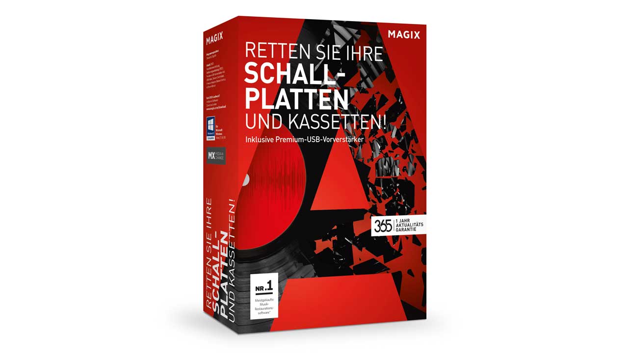 Für die Digitalisierung analoger Tonträger ist Retten Sie Ihre Schallplatten & Kassetten (80 Euro) gedacht. Wobei hier im Paket das Audio Cleaning Lab steckt – und ein USB-Vorverstärker der den Rechner fitt macht für die Überspielung von Schallplatten etc. auf den Computer.