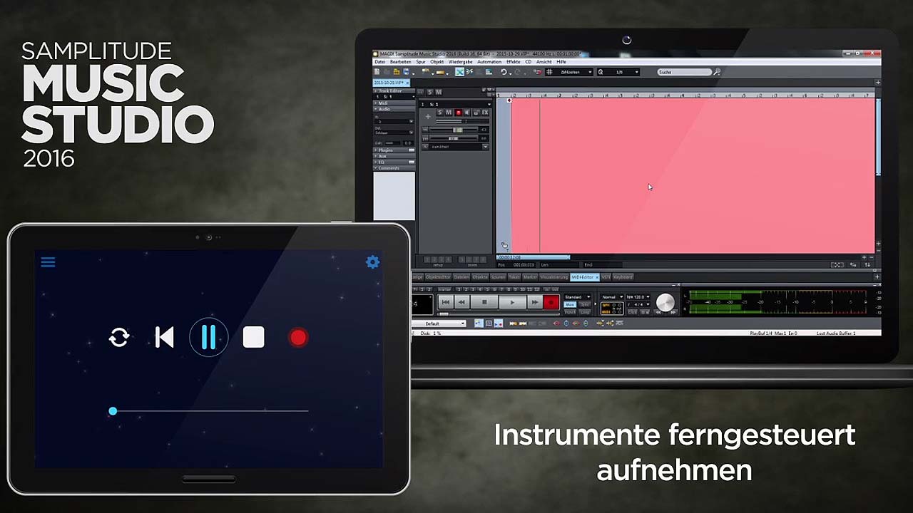 Magix erlaubt beim Samplitude Music Studio 2016 jetzt auch die Steuerung via Tablet per App.