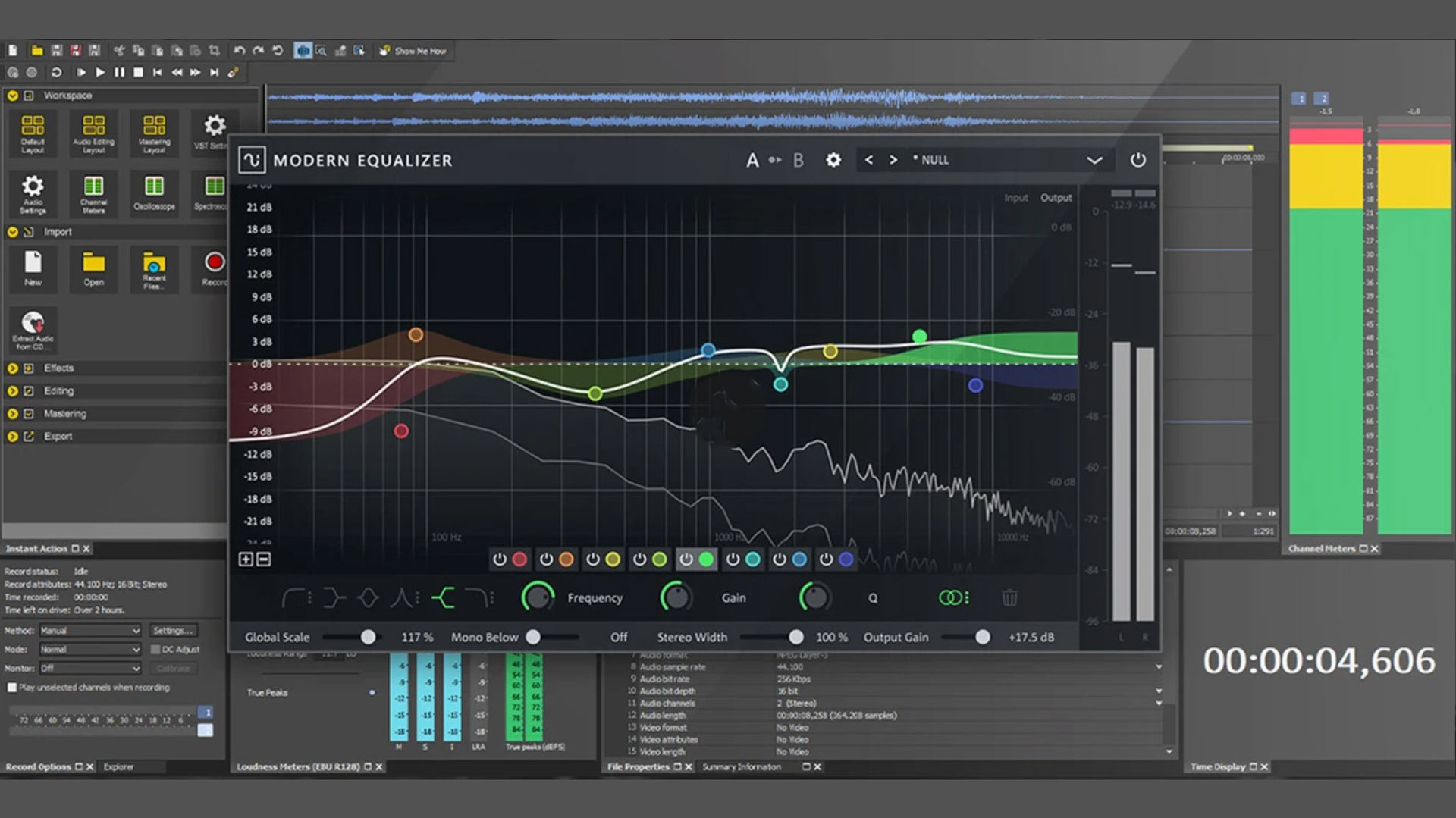 Sound Forge Audio Studio 16 ist explizit für den Einstieg in die Audiobearbeitung konzipiert, soll aber dennoch für die Bearbeitung von Podcasts oder Gesang oder die Klang-Restauration geeignet sein. Auch das Wave-Editing und Mastering ist mit der Software machbar. Neu ist der neue Filter modernEQ mit dem man den Klang nach persönlichen Vorlieben anpassen und formen kann. Die Visualisierung des Frequenzspektrums sowie die Stereobreiten-Bearbeitung des Signals sollen in der Restaurationssoftware besonders einfach sein. Mit modernReverb liefert das Programm Presets für räumliche Klangerlebnisse.