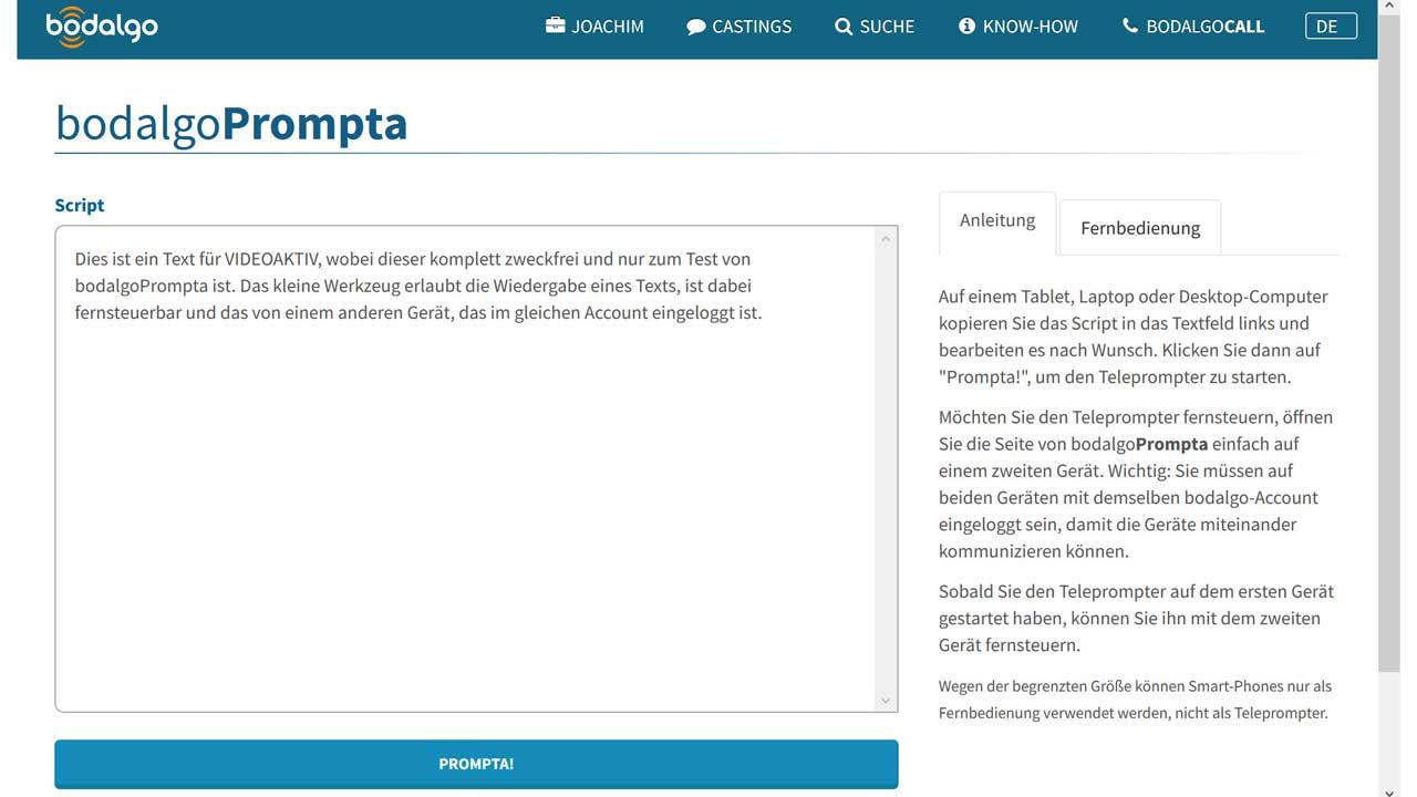 Bodalgo vermittelt seit Jahren Sprecher und Übersetzer. Mittels Castings kann man seinen Wunschsprecher suchen. Jetzt bietet die Plattform einen kostenfreien und fernbedienbaren Teleprompter.