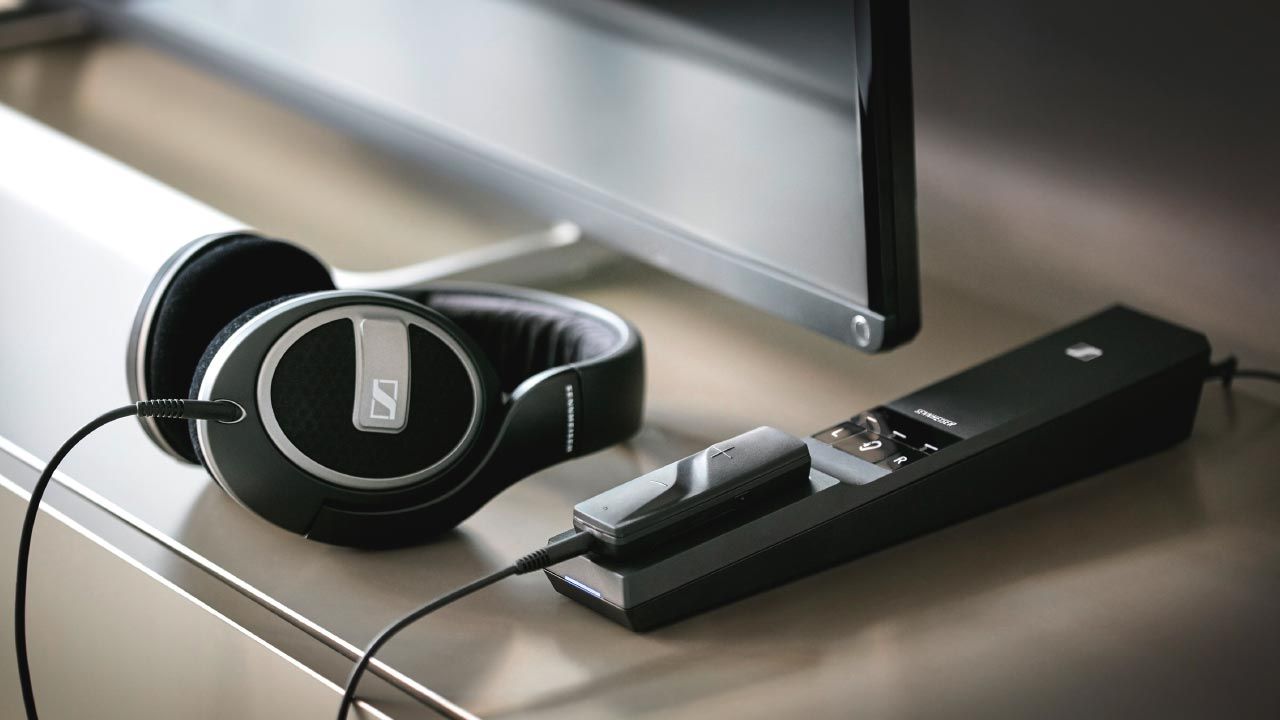 Das Flex 5000 von Sennheiser ist eine kompakte Audiolösung für kabellosen Sound am Fernseher via Kopfhörer. Dabei lässt sich jeder beliebige Schallwandler mit Klinke-Buchse einsetzen.