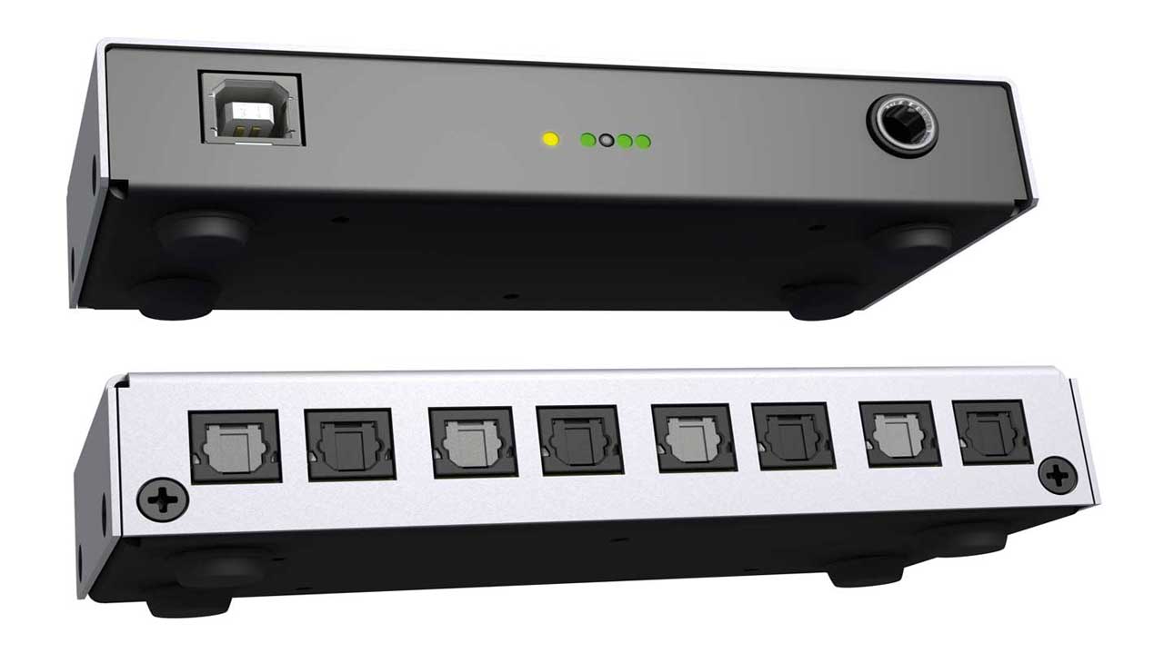 Das RME Digiface USB bietet vier optische Digital-Inputs für Stereosignale (S/P-DIF) oder achtkanalige ADAT-Quellen.