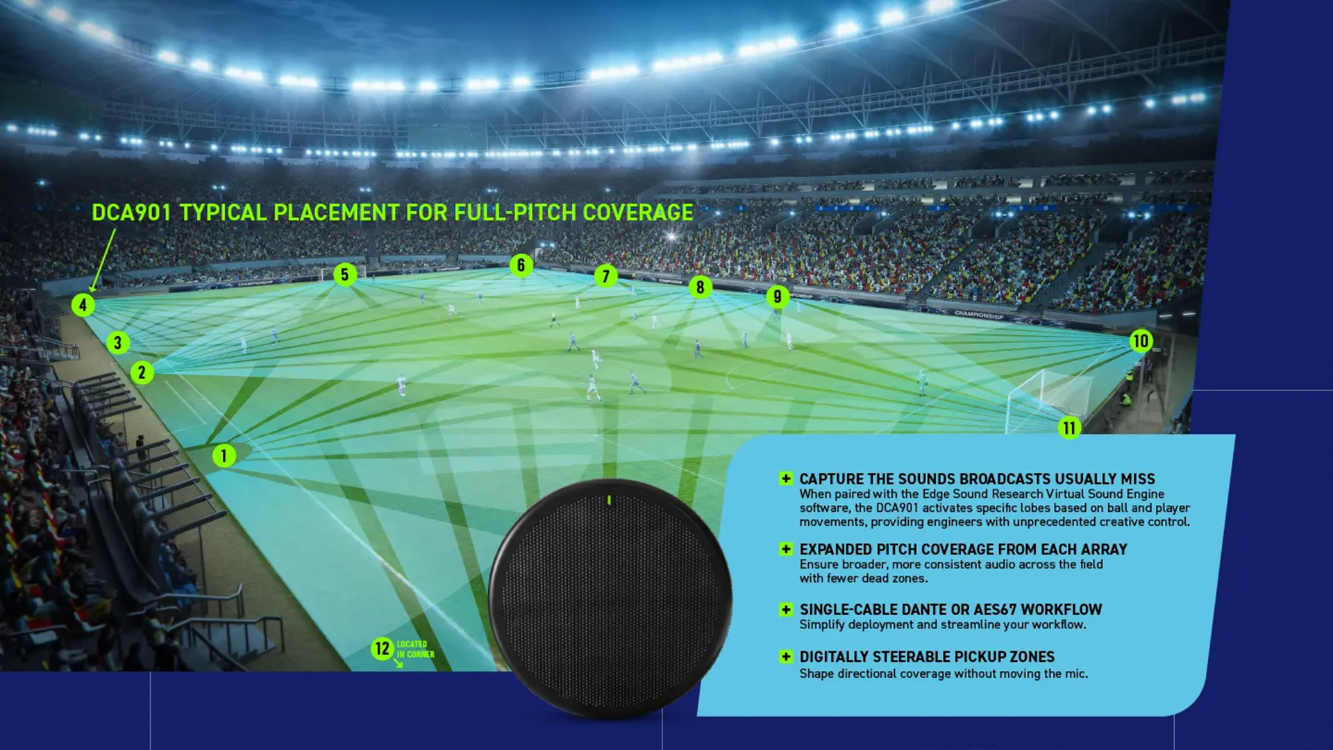 Dadurch, dass jedes Array acht Kanäle liefert, soll die Produktion eines Fußballspiel mit zwölf DCA901 realisierbar sein.