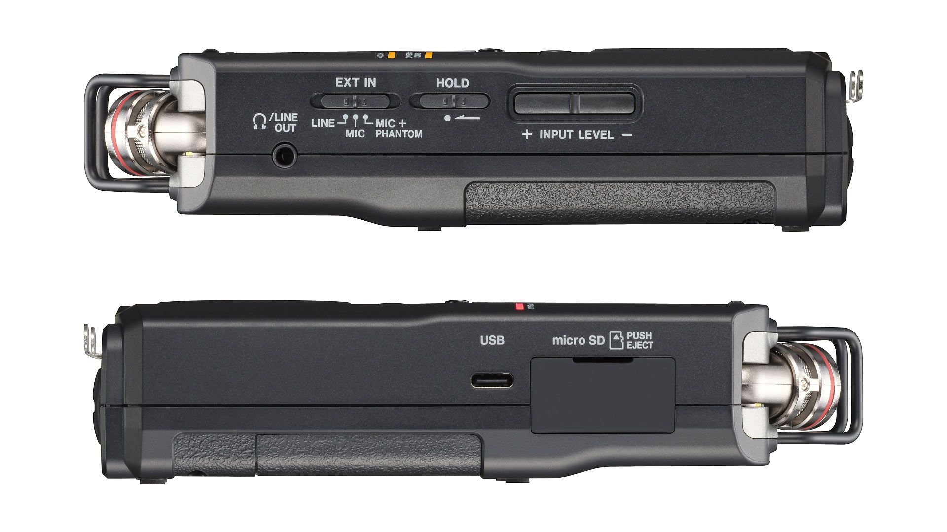 Bei der vierspurigen Aufnahme bilden die neu entwickelten, in AB- und XY-Anordnung ausrichtbaren internen Mikrofone die Spuren 1 und 2, während die beiden XLR/Klinke-Kombibuchsen mit schaltbarer 48 V-/24 V-Phantomspeisung für die Kanäle 3 und 4 zuständig sind. Mit einem Schalldruckpegel von 125 dB sollten die Mikrofone für die allermeisten Anwendungszwecke gerüstet sein. An den externen Eingängen kann man nun das Eingangs-Gain regeln, die eingebauten HDDA-Vorverstärker sollen mit einem äquivalenten Eigenrauschen von -126 dB klaren und rauscharmen Klang liefern. Außerdem will Tascam die Abschirmung gegenüber Strahlungen von beispielsweise Smartphones verbessert haben. Als Aufnahmecodec steht neben WAV mit maximal 32 Bit und 96 kHz mit MP3 auch ein „kleines“ Format zur Verfügung. Als Aufnahmemedium dient eine microSD-Karte, welche nun Kapazitäten von bis zu 512 GB besitzen darf.