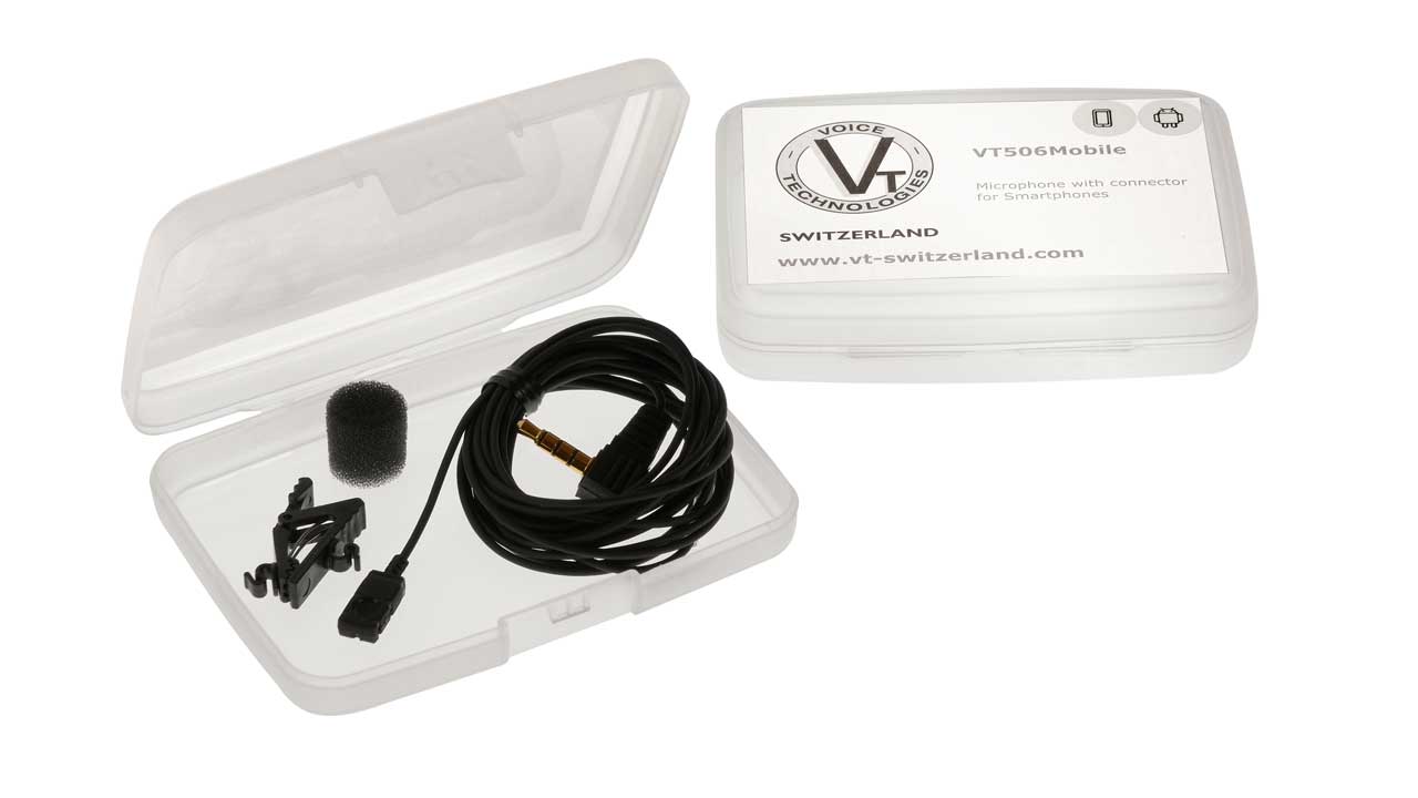 Voice Technologies liefert das VT506MOBILE ab sofort für 183,35 CHF ohne Mehrwertsteuer. Das entspricht 169 Euro – oder mit Mehrwertsteuer 201 Euro. Im Lieferumfang befindet sich eine transparente Transportbox, die in jede Hosentasche passt. Darin ist neben dem Mikro ein Windschutz sowie ein Ansteckclip.