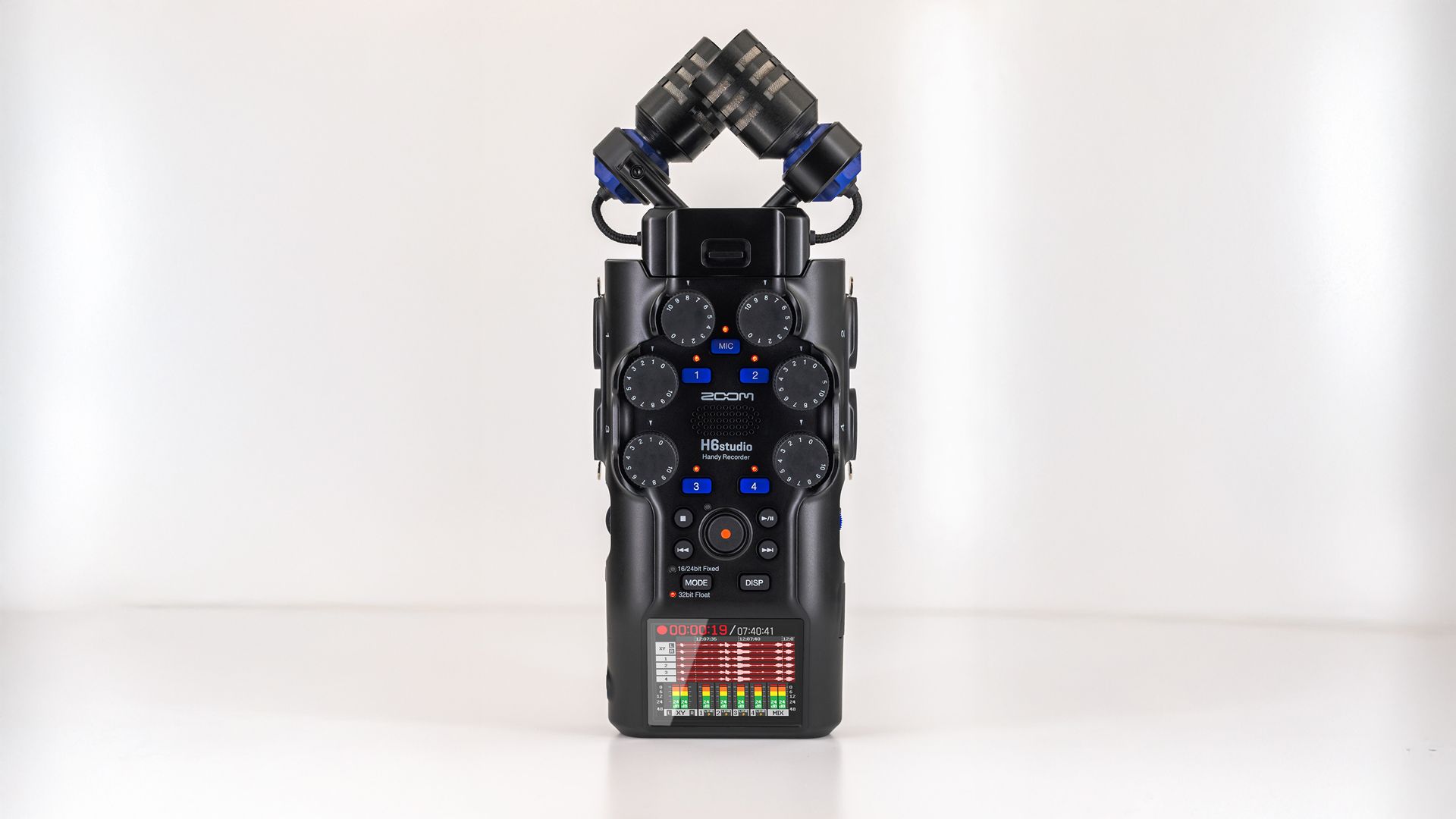 Der neue H6studio Audio-Fieldrecorder ist mit Großmembran-Mikrofonen in XY-Anordnung und vier Vorverstärkern ausgestattet. Er unterstützt 32-Bit-Float- oder klassische 24-Bit-Aufnahmen.