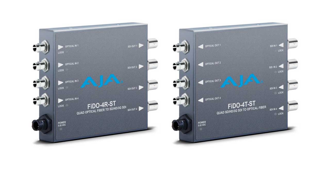 Der FiDO-4T-ST und FiDO-4R-ST übertragen 4K/UltraHD/HD anhand von Glasfaser-Kabel über bis zu vier 3G-SDI-Schnittstellen auf eine Entfernung von bis zu 10 Kilometern. Das funktioniert dann zum Beispiel mit der Aja Cion-Kamera. Alternativ lässt sich auch viermal HD über ein optisches Kabel „transportieren“. Die Konverter sind für mobile Einsätze prädestiniert und eignen sich für In- wie Outdoor-Nutzung. Es gibt fünf Jahre Garantie bei einem Preis von jeweils 1495 US-Dollar.