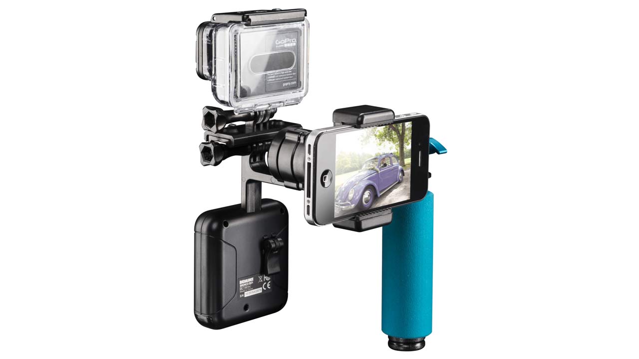 Walser stattet den BigBalance mit dem Aptaris GoPro Adapter aus Aluminium aus und liefert desweiteren für die 200 Euro neben dem Gimbal einen Handgriff, Schnellwechselplatte für GoPro Case, Smartphonehalter, Li-Po Akku, Ladegerät, USB-Kabel und Befestigungszubehör.