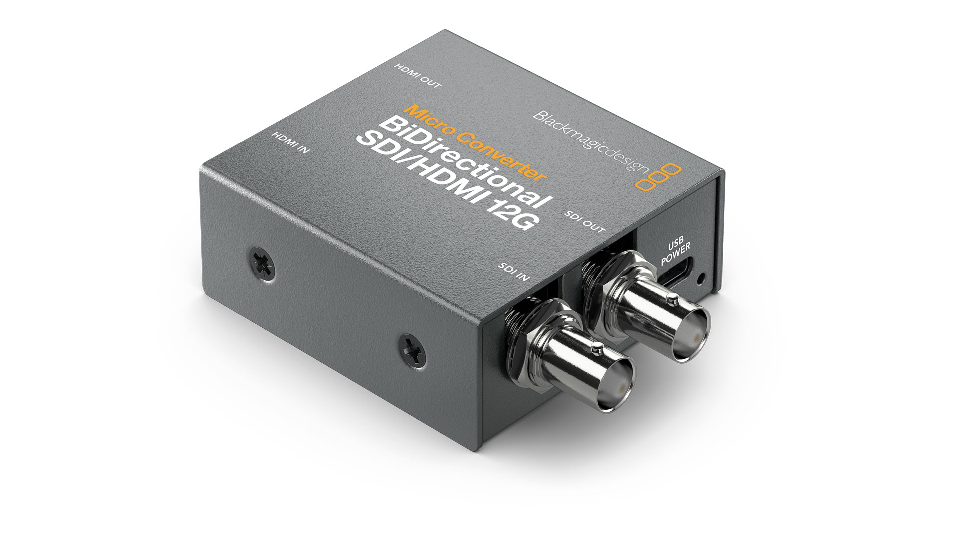 ABSATZ 3 Der Micro Converter HDMI to SDI 12G (115 euro) ist in erster Linie fürs Anschließen von HDMI-Kameras und Computern an professionelle SDI-Geräte gedacht. Für den Anschluss an SD-, HD- oder Ultra-HD-Equipment stehen zwei 12G-SDI-Ausgänge bereit. Beim Arbeiten in HD unterstützt dieses Modell 3G-SDI Level A und B sowie die Filmnormen 4Kp/24, 4Kp/47,95 und 4Kp/48. Wie der Name es sagt konvertiert der Micro Converter BiDirectional SDI/HDMI 12G (159 Euro) in beide Richtungen und in unterschiedliche Normen. Nutzer können so SDI in HDMI und HDMI in SDI zur selben Zeit umwandeln. Er unterstützt die Camera Control Protocol Konvertierung, sodass Nutzer Blackmagic Pocket Cinema Cameras mit professionellen SDI-Live-Produktionsmischern einsetzen können.
