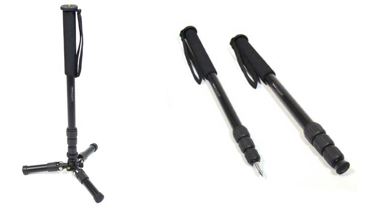 Das Monopod M4 kann als Einbeinstativ mit Gummi- und Speickaufsatz eingesetzt werden oder dient als Stativ mit Standfuß.