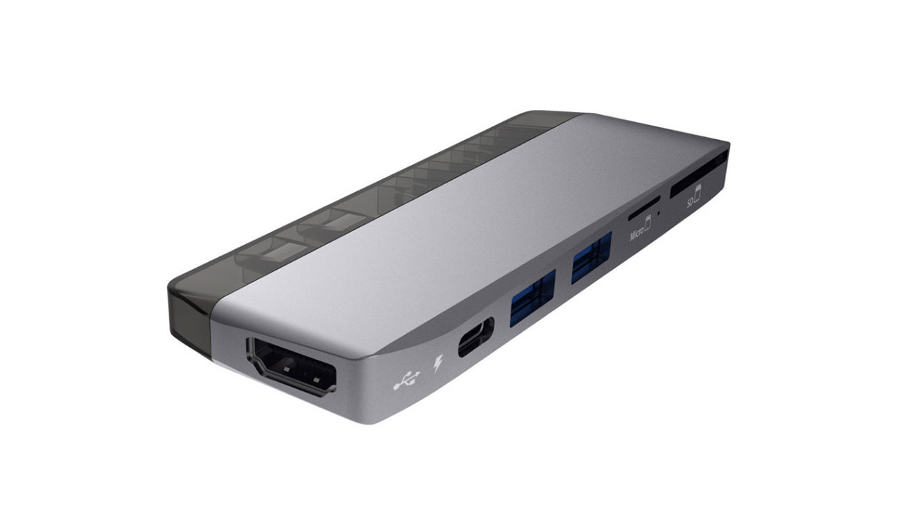 Man erhält beim Flashdock also nicht nur mehr Anschlüsse, sondern auch zugleich einen SSD-Flash-Speicher zur Sicherung und Speicherung von Daten oder zur Nutzung als Arbeitslaufwerk, etwa beim Videoschnitt. Angeschlossen wird das FlashDock über zwei der seitlich am MacBook platzieren Thunderbolt-3-Ports. Damit diese aber nicht belegt sind, offeriert das FlashDock diese auch gleich wieder (nur Variante mit MiniDP) und bringt noch weitere Ports mit. Dabei gibt es zwei Varianten: Das FlashDock mit HDMI bietet ein oder zwei Terabyte Speicherplatz und kommt mit einer USB-C-Buchse (87 Watt Ladestrom), zwei USB-3.0-Anschlüssen und noch einem SD- und MiniSD-Kartenleser und einem HDMI-Anschluss für 4K.