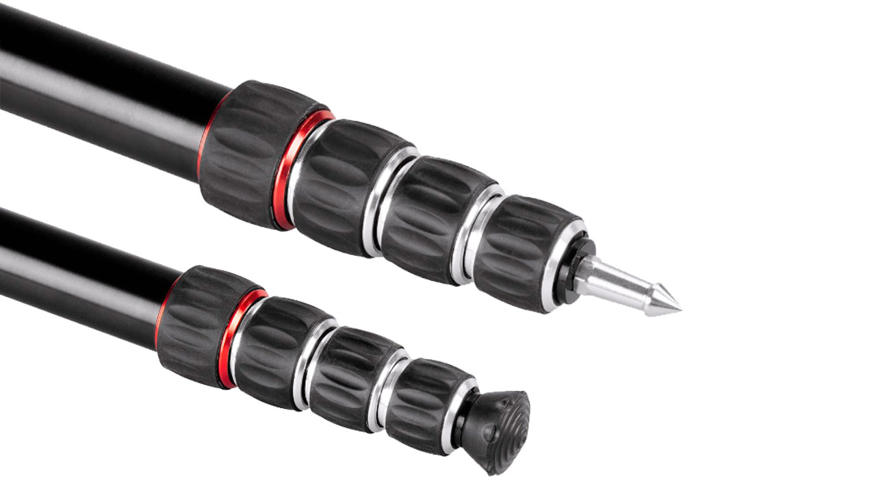 Die maximale Arbeitshöhe liegt bei 170 Zentimetern, eingezogen misst das Stativ noch 45 Zentimeter. Für die Befestigung der Kamera gibt es ein herkömmliches 1/4 Zoll Gewinde. Das fünfteilige Beinsegment ist mit Schraubklemmen ausgestattet und vierfach ausziehbar. Der Fuß ist wahlweise mit einer Gummi- oder Erddorn-Aufsatz ausrüstbar. Das Stativ besteht aus Aluminium, hat ein mit Schaumstoff ummanteltes Oberteil und ein Eigengewicht von 465 Gramm.
