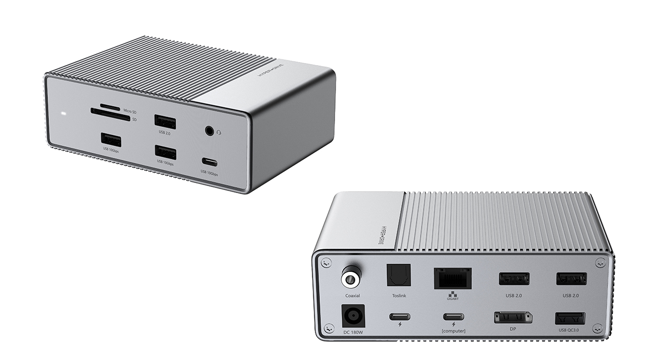 Die 12-Port-Variante kommt mit Anschlüssen für HDMI und DIsplayPort sowie Kartenleser, USB-C und Netzwerk- und Audio-Buchsen.