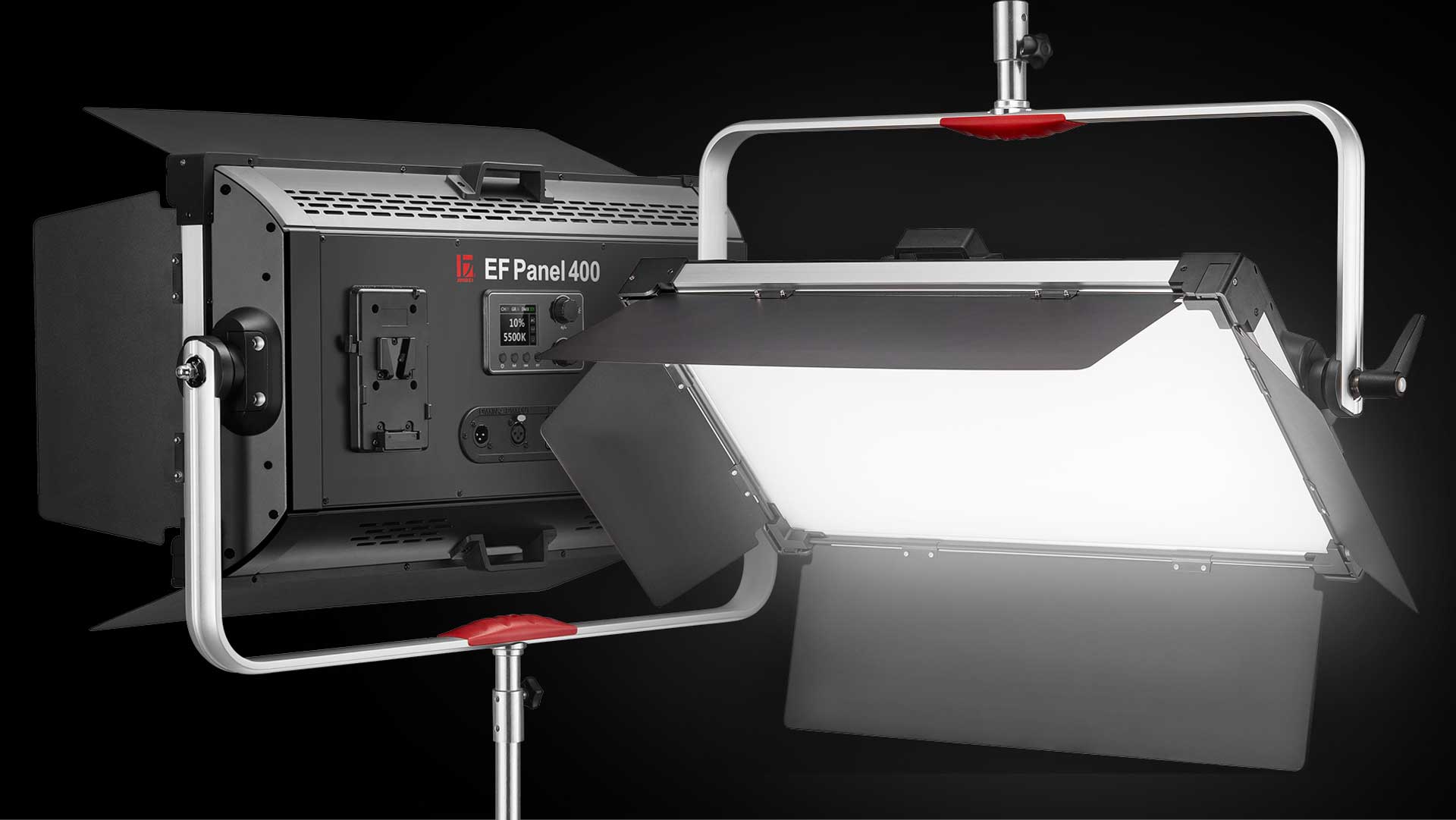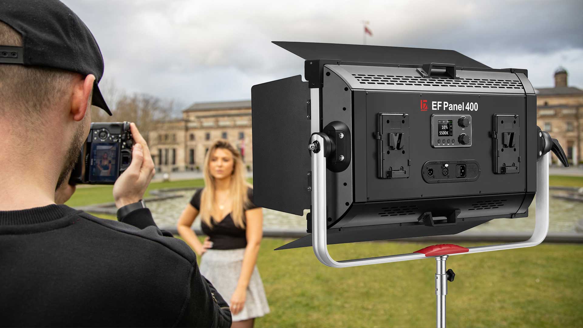 Der Hersteller gibt eine Farbgenauigkeit von CRI > 97, ein TLCI > 98 und eine Beleuchtungsstärke von 8.850 Lux auf einem Meter an. Ebenfalls neu ist die Option den Lüfter bei Bedarf abzuschalten, sodass für Filmaufnahmen die Geräuschbelastung auf ein Minimum reduziert wird. Für bequeme Arbeitseinsätze kann das EFP-400 V2 per Funkfernsteuerung TR-Q7, EF-RC (beide separat erhältlich) oder per Smartphone-App bedient werden. Die Leuchten lassen sich wahlweise via Netzteil oder via (optionalem) V-Mount-Akku versorgen.