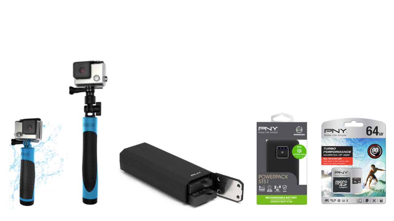 PNY stellt aktuell eine ganze Palette an neuem Zubehör, speziell für den Gebrauch mit Actioncams vor. Darunter zwei Handgriffe namens Action Grip und Action Pole sowie die Powerbank namens ST51 und der Doppel-Akku-Lader „Action Charger“.