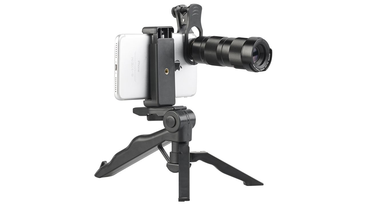 Mit einem universellem Halte-Clip soll das Smoikon Vorsatz-Objektiv mit nur einem Handgriff an jedem Smartphone oder Tablet-PC nutzbar sein und ein stufenloses Zoom liefern. Wobei der Hersteller gleich eine Smartphonehalterung und ein kleines Stativ mitliefert.