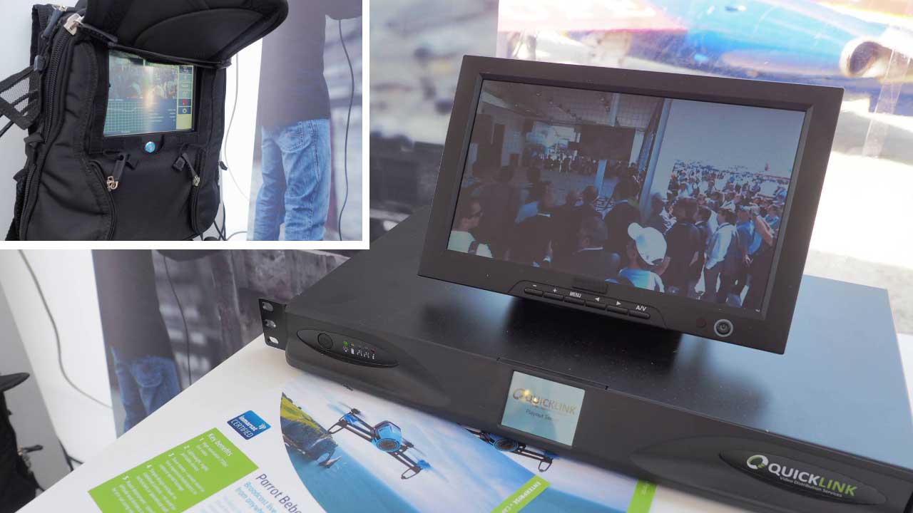 Mit dem Quicklink Backpack, Übertragungs-Technik von Immarsat und der Parrot Bebop Drohne, sind jetzt HD-Livestreams von Flugaufnahmen machbar.