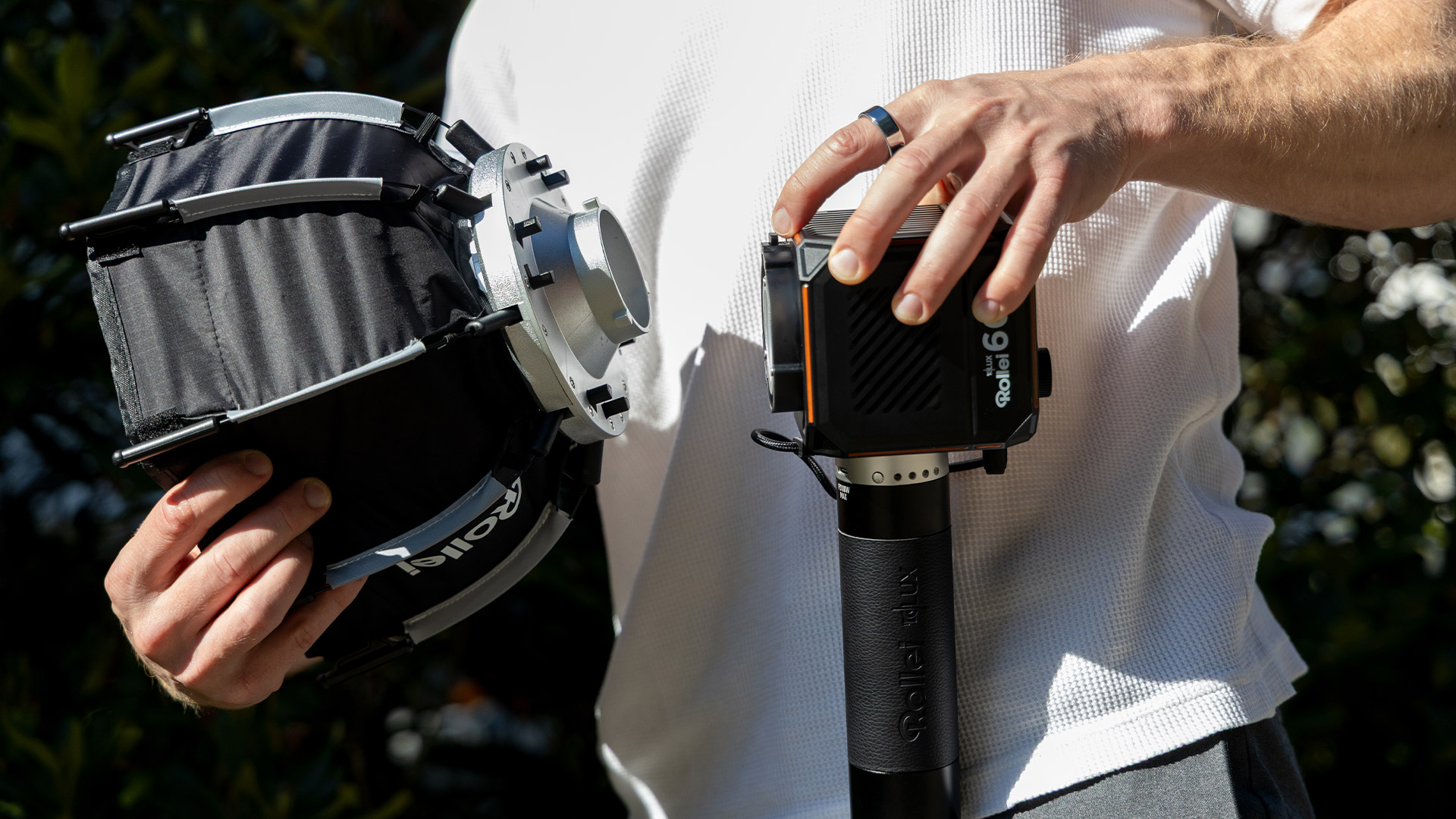 Mit Abmessungen von 9,6 x 9,6 x 12 Zentimetern wiegt die Leuchte 911 Gramm. Beim Zubehör setzt Rollei auf die eigenen Zubehörteile der LUX-Serie