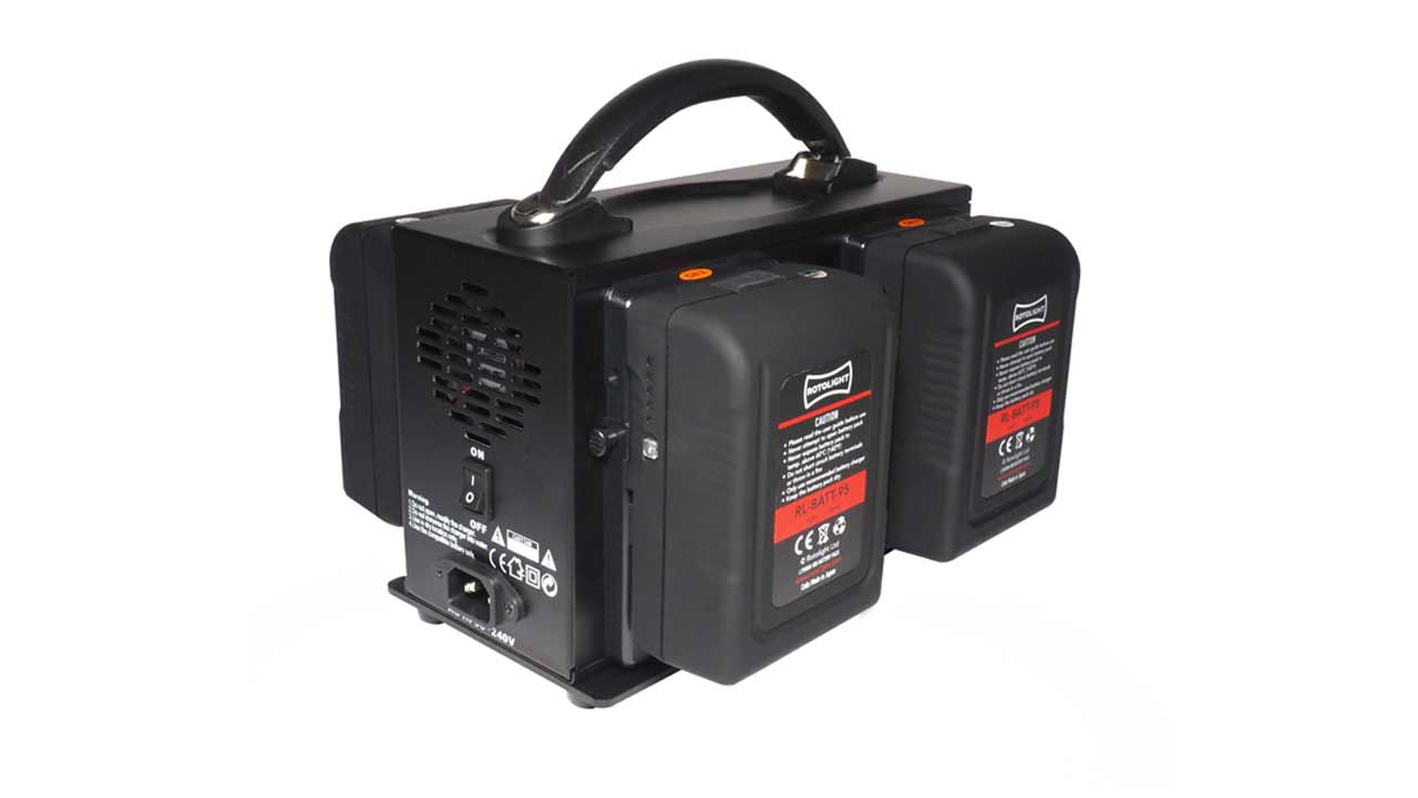 Ebenfalls neu ist das Rotolight Lithium Ionen V-Mount-Batterie-Sortiment. Dazu gehört ein V-Mount-Akku mit 95 Watt/Std., sowie universell für alle V-Mount-Akkus nutzbare 2- oder 4-Wege V-Mount-Ladegeräte. Die Preise hierfür teilt der Vertrieb leider nicht mit.