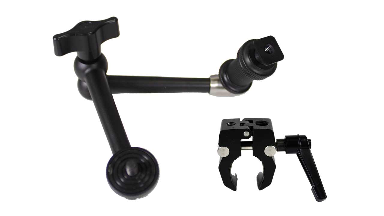 Zum Zubehör gehören inzwiscen auch Klemmen und Arme - wobei wir diese Machart schon bei zig verschiedenen Anbietern gesehen haben.