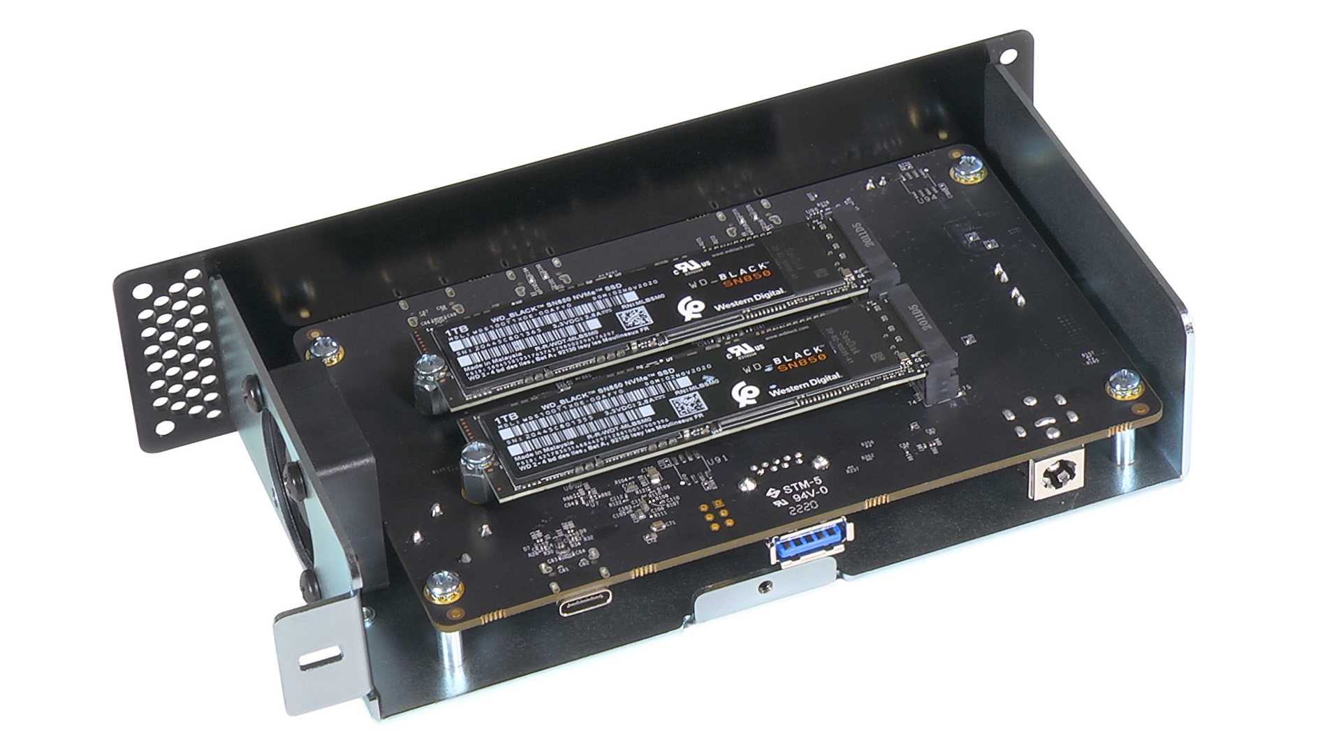 Zwei NVMe-SSD mit bis zu 16 Terabyte Speicher lassen sich via PCI in der Sonnet Echo Dual NVMe Thunderbolt Dock installieren.