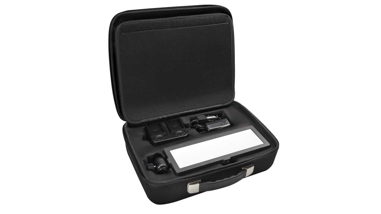 Die Leuchte kommt samt Zubehör in einer Transporttasche.