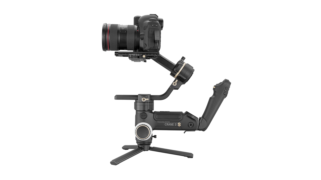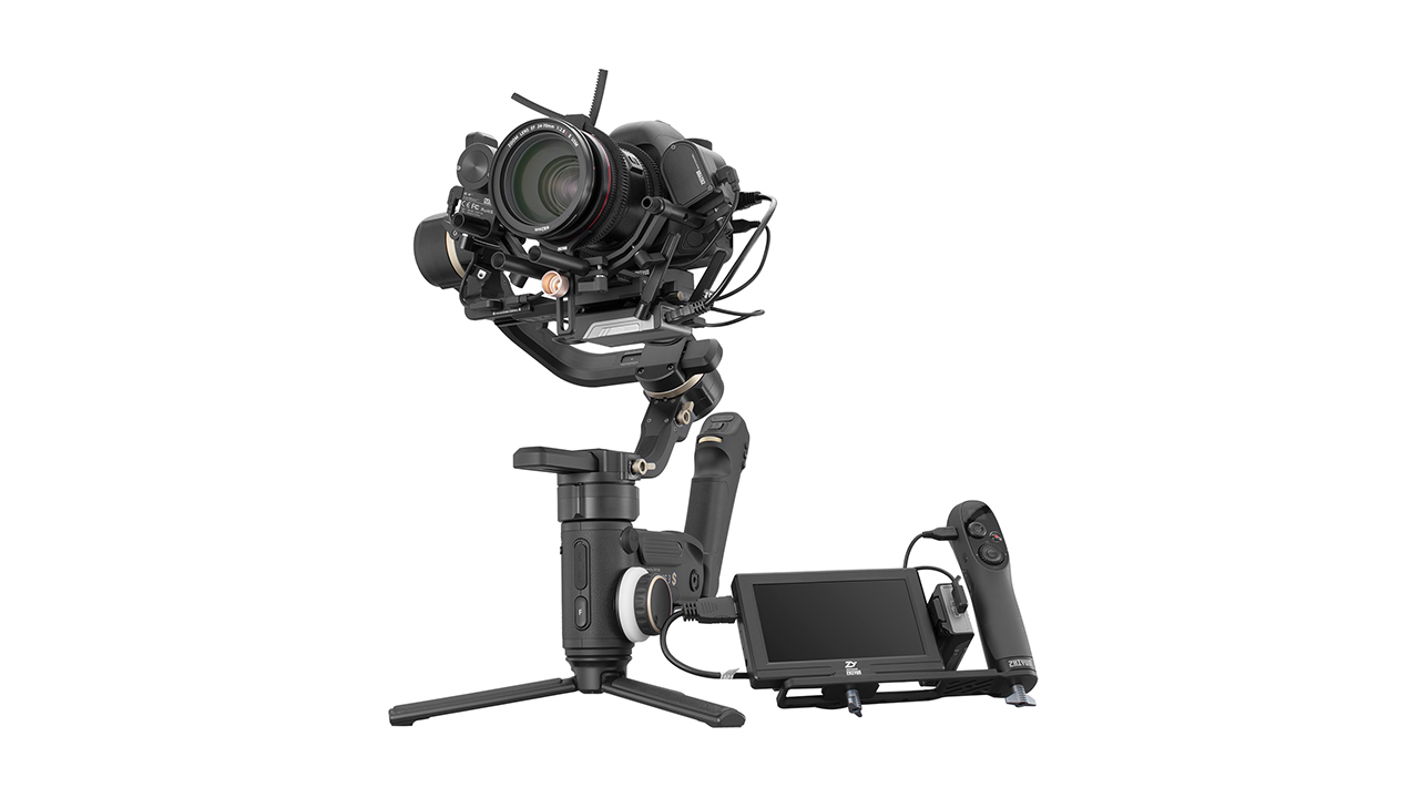Zihyun stattet den Crane 3S nach eigener Aussage mit neuen Hochleistungsmotoren aus, die eine Last von bis zu 6,5 Kilogramm tragen können. Damit lassen sich dann auch professionelle Ausstattungen wie etwa die Canon EOS 1DX, Blackmagic Pocket Cinema Kameras und auch die Canon Cinema EOS, Sony FS und FX Modelle sowie die Red Digital Cinema Kameras tragen. Das beigefügte Erweiterungsmodul lässt sich für größere Kinokamera-Aufbauten an der Rollachse befestigen. Für kleinere Kombinationen mit DSLR-Kameras lässt es sich auch entfernen, womit das Setz kompakter und tragbar wird. Der „Underslung-Modus“ wurde für den Crane 3S neu strukturiert und zwei verschiedene, abnehmbare Griffe entworfen: der EasySling-Griff und der SmartSling-Griff. Mit dem EasySling-Griff befestigt, bekommt man eine komfortablere Handhabung im aufrechten Betrieb oder bei der Nutzung des Underslung-Modus. Alternativ montiert man den SmartSling-Griff und bekommt dann Bedienfeld und ein OLED-Display für die Kontrolle der Kamera- und Gimbal-Parameter. Beide Griffe haben verschiedene Gewindebohrungen in verschiedenen Größen, um Zubehör zu befestigen. Durch den modularen Aufbau ist der Crane 3S auch kompatibel zu motorisierten Rollen, Kränen, Kabelkameras, Easyrigs und mehr.